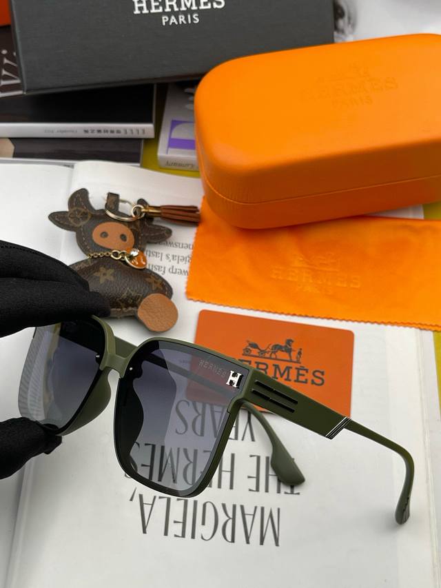 Tr polarized sunglasses Hermes, original Hermes product, super popular online style, classic luxury, global trend [kiss] Fashionable square frame sunglasses, extraordinary temperament, classic large frame style sunglasses [basketball] Top quality luxury logo, genuine high quality model H2290