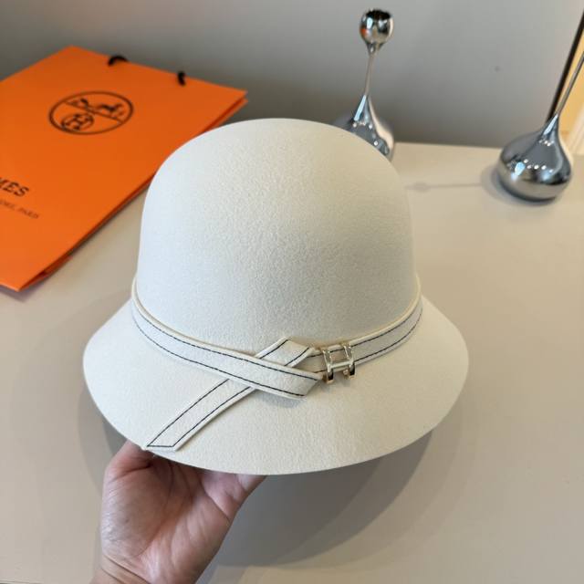 Herems Hermes autumn and winter new wool bucket hat, 100% wool% irregular cut design, a must-have for fashion goddesses, head circumference 57Cm head circumference 57Cm