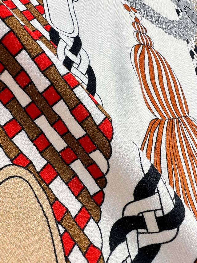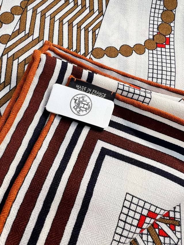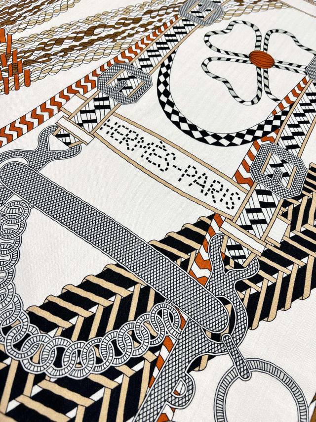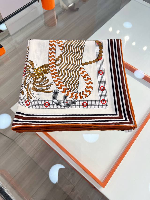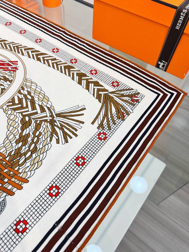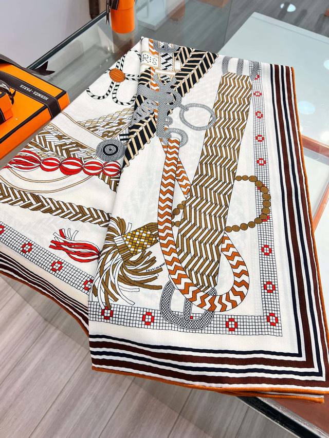 Woven Saddleband "140" Square Scarf ~ Hermes Hand-rolled Hem Silk and Wool Square Scarf 30% Silk 70% Wool This classic Hermes piece embodies the essence of powerful and captivating feminine charm. This 140 square scarf is innovatively interpreted, conveying boundless emotion and freedom, writing a unique narrative of individuality. Made in France. Size: 135 x 136 cm. Due to the hand-rolled hem, the indicated size may vary slightly.