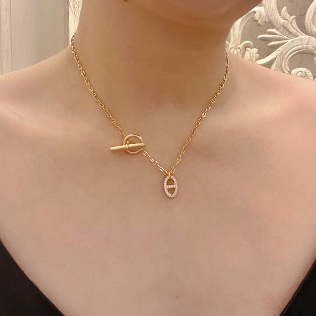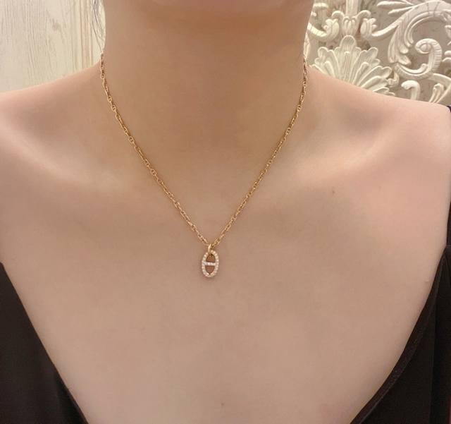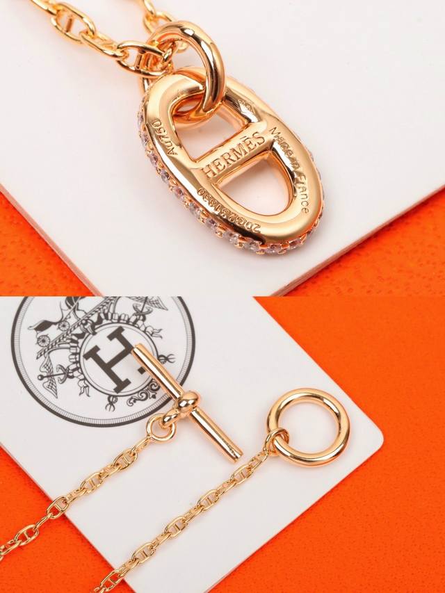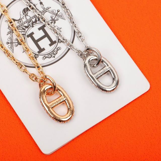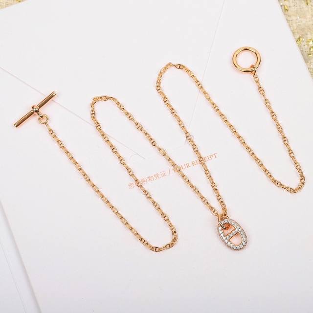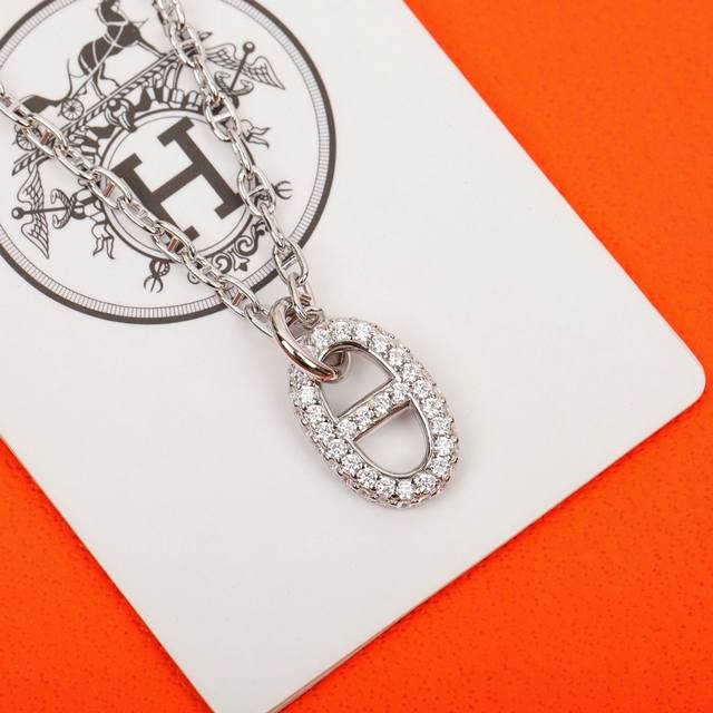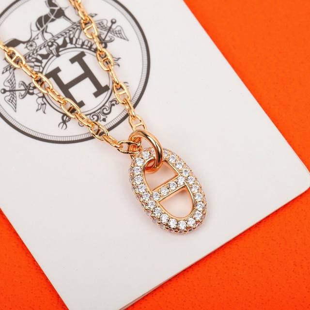 205137 We offer a full diamond pig nose necklace, customizable in 18K real gold and diamond version. We only make genuine gold versions, please inquire for pricing. This 925 sterling silver necklace with thick gold plating is one of our recent surprises. It's a small and exquisite Confettis style, made of solid sterling silver! The materials are the same as in boutiques, so it has a substantial weight in your palm. Inspired by Herm