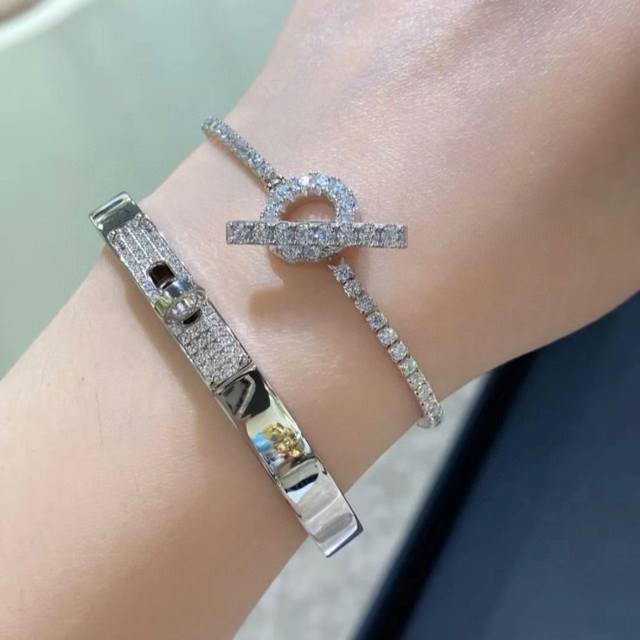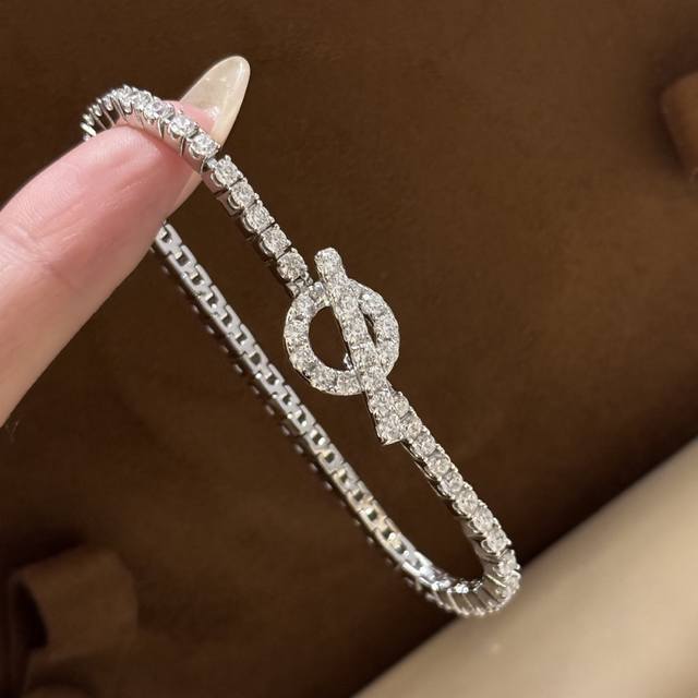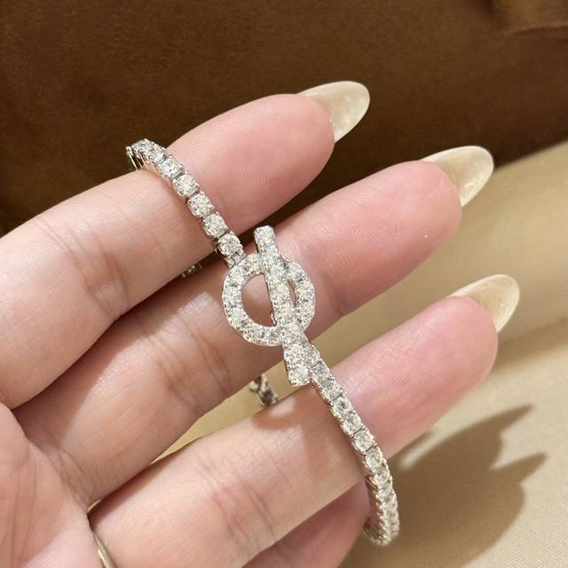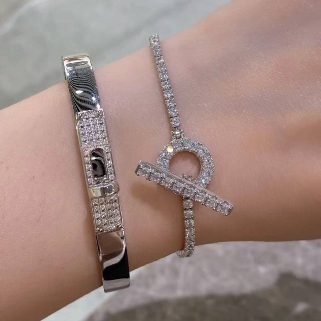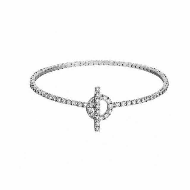 A1029 H-Style Bar, Full-Diamond Small Q Bracelet, Stunningly Beautiful And Dazzling. High-End Custom-Made, Imported S925 Sterling Silver Material With Diamond-Shaped Q Design. I Like To Call It