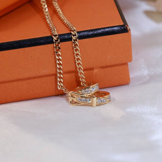 Exquisitely crafted Hermes belt buckle necklace, full diamond setting, hand-set