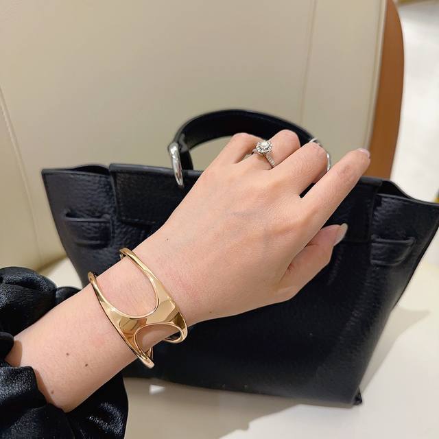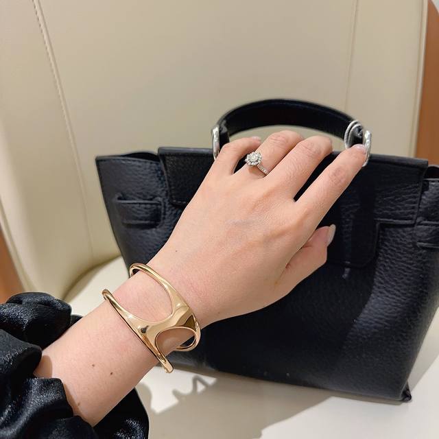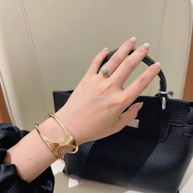 Hermes H Ring Fashionable Gold-Plated Micro-Set Diamonds, Fresh Ring With An Ope