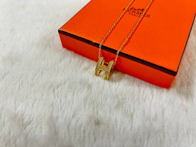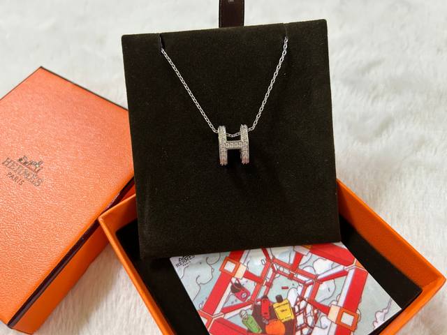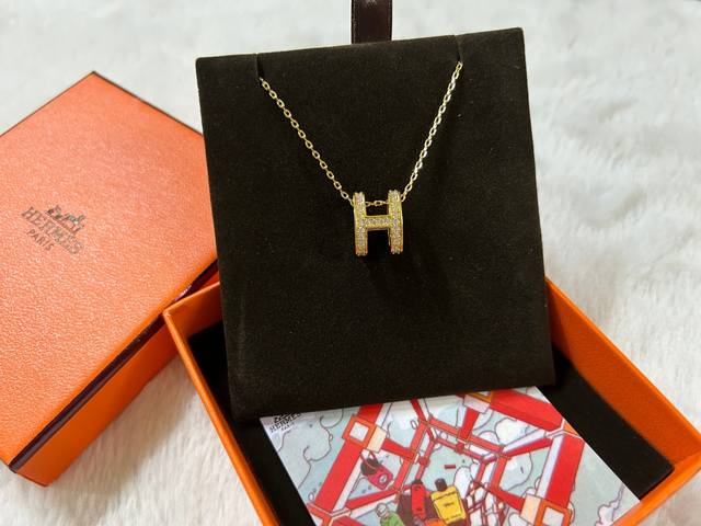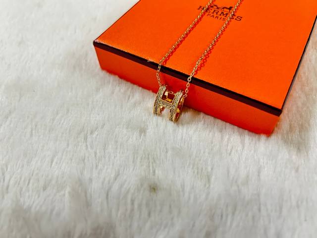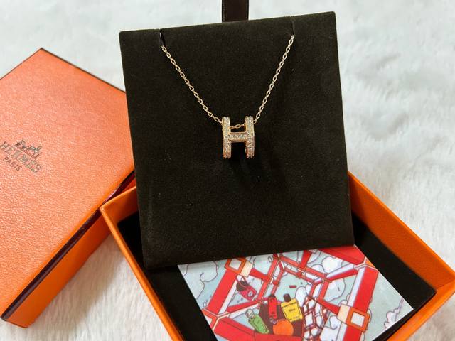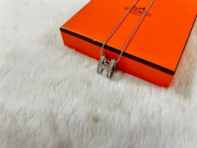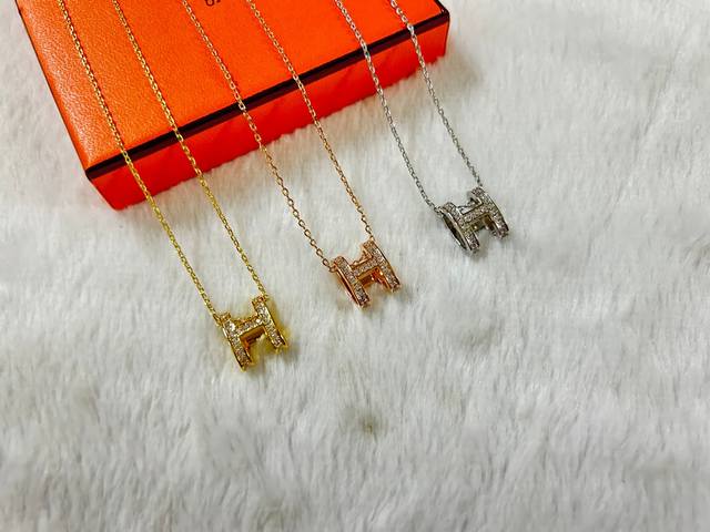 / Hermes H logo full diamond necklace, white gold, rose gold, yellow gold, Ddd