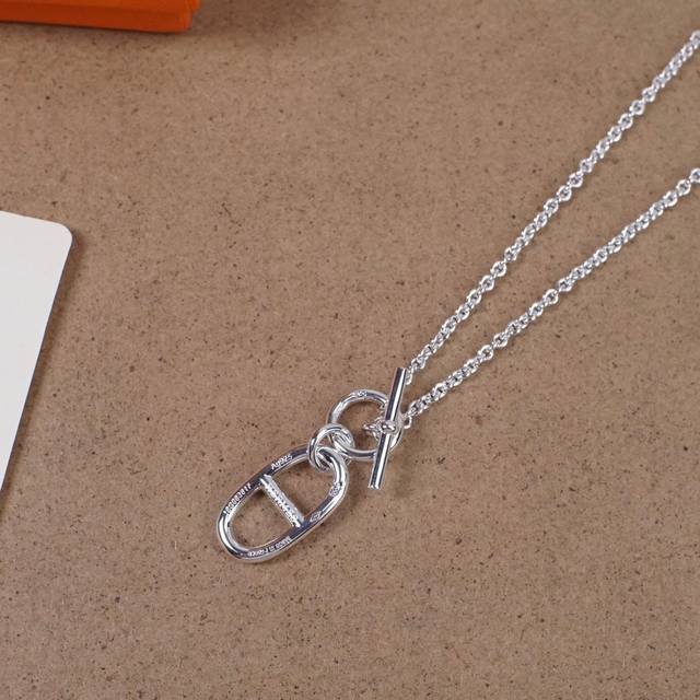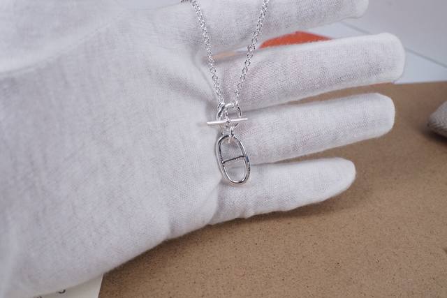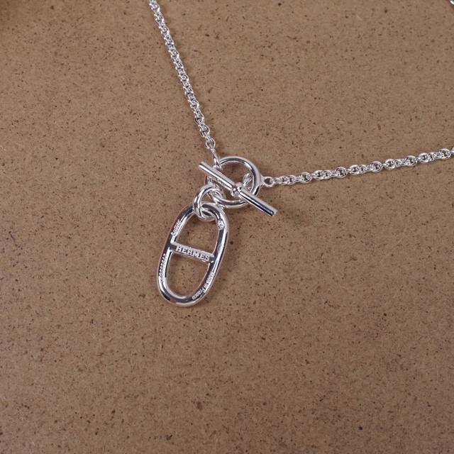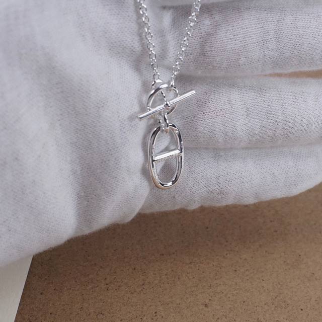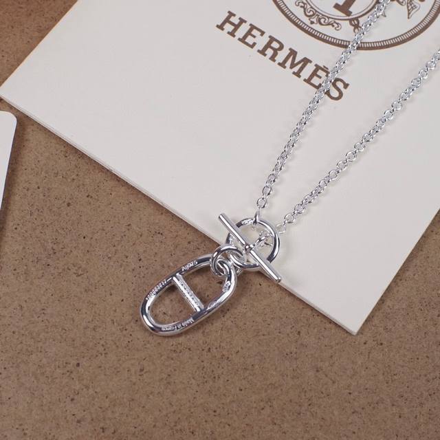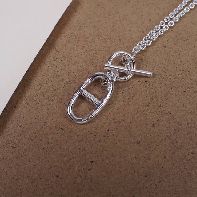 Hermes Pig Nose Necklace Z 3750, a replica of the original, made of sterling silver like the Z model. This highly popular sterling silver pig nose necklace features a classic logo pendant, a simple Ot clasp design, and all accessories are CNC machined. The hardware is polished to a very fine finish, with clear and crisp lettering. It feels incredibly luxurious in your hand! A must-have for everyone, this is definitely a piece that will be worn and seen a lot!