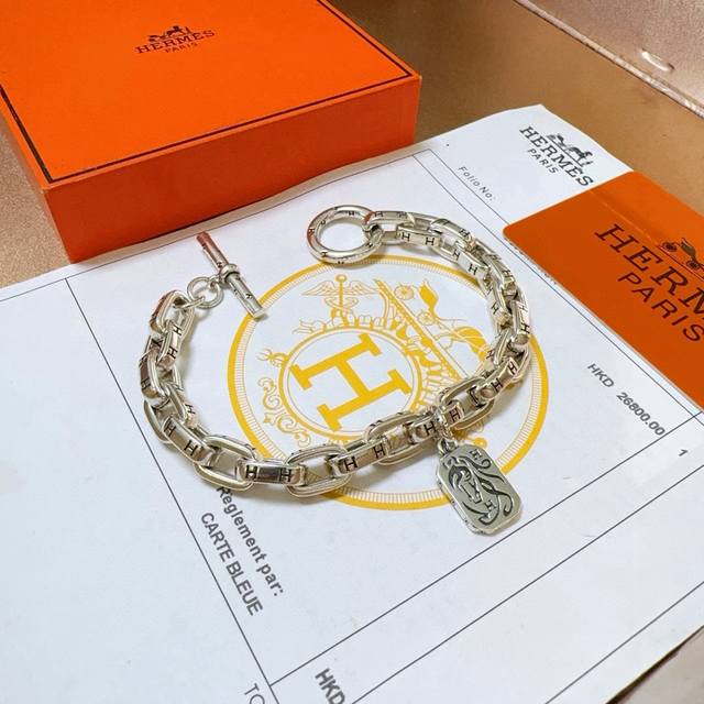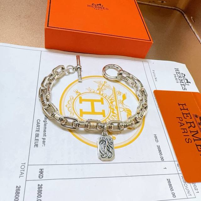 New Hermes bracelet, thicker platinum version. High-end craftsmanship, the same style worn by many online celebrities. This Hermes bracelet truly tests the craftsman's skill, ensuring every detail is perfect