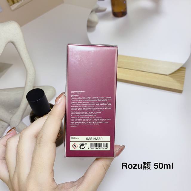 High-quality Aesop Rozu Eau de Parfum 50ml Fragrance Notes: Floral Top Notes: Rose, Shiso, Pink Pepper, Bergamot, Bitter Orange Middle Notes: Rose, Guaiac Wood, Jasmine, Ylang-Ylang Base Notes: Sandalwood, Vetiver, Patchouli, Musk, Myrrh
