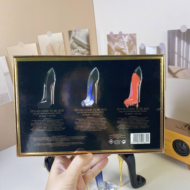 High-quality DDD Carolina black and white box high heels and perfume three-piece set. DDD Includes: 3*30ml. DDD Black high heels + Good Girl Lightweight Edition + Red Good Girl DDD