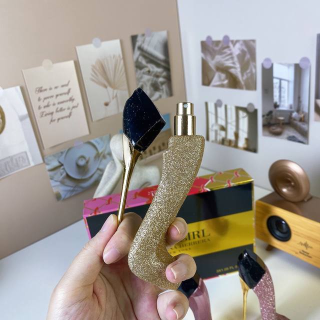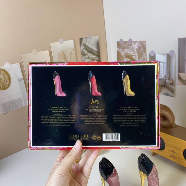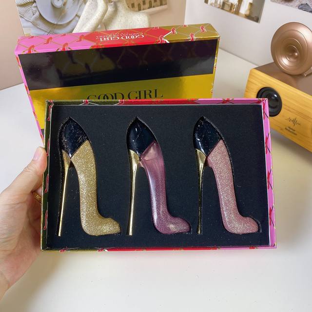 High-quality Carolina Black Gold Box High Heels and Perfume Three-Piece Set. Includes: 330ml. Available in purple glitter, pink glitter, and gold glitter.