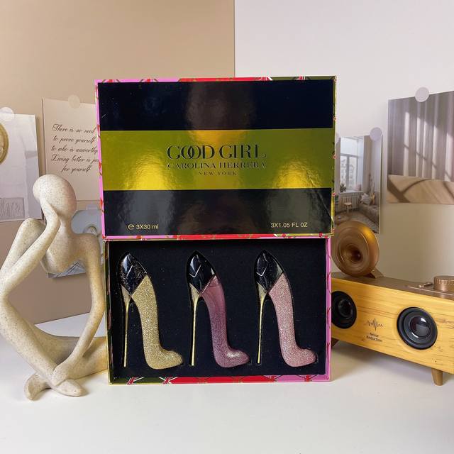 High-quality Carolina Black Gold Box High Heels and Perfume Three-Piece Set. In