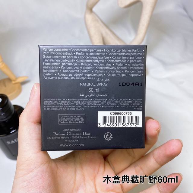 High-quality Dior Sauvage perfume in a wooden box, 60ml. This is the longest-lasting version. Although it's a men's fragrance, women love it; it's suitable for both men and women. Fragrance notes: Oriental. Top notes: Bergamot, Mandarin Orange, Elemi. Middle notes: Sandalwood. Base notes: Vanilla, Frankincense, Tonka Bean.