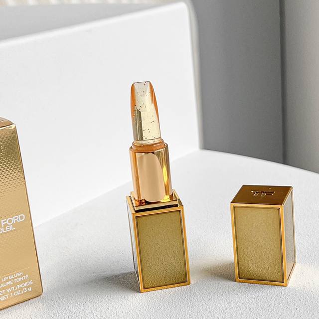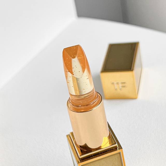 I pre-ordered the TF Gold Tube Z09 Soleil a week in advance, and the sales associate (Sa) messaged me last night saying it had arrived. I rushed to pick it up this afternoon! Since I already have regular sizes of the other shades in the Gold Tube, I chose this one, which is more flashy than practical. It has a clear lipstick with gold foil inside, very pretty! When applied to the hand, it's a very light pink; the sales associate said it changes color depending on temperature. Even after wiping it off with a tissue, it's still a light pink. I probably won't use it, but it's pretty, that's all that matters, haha. It also came with a small lipstick pouch with a small mirror inside, the perfect size to hold a TF lipstick. No more worrying about scratching my bag while carrying a TF lipstick, hehe.
