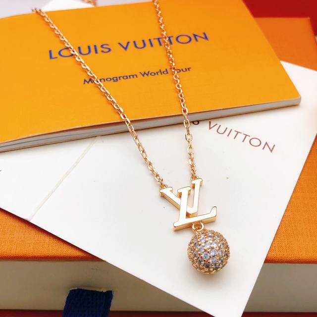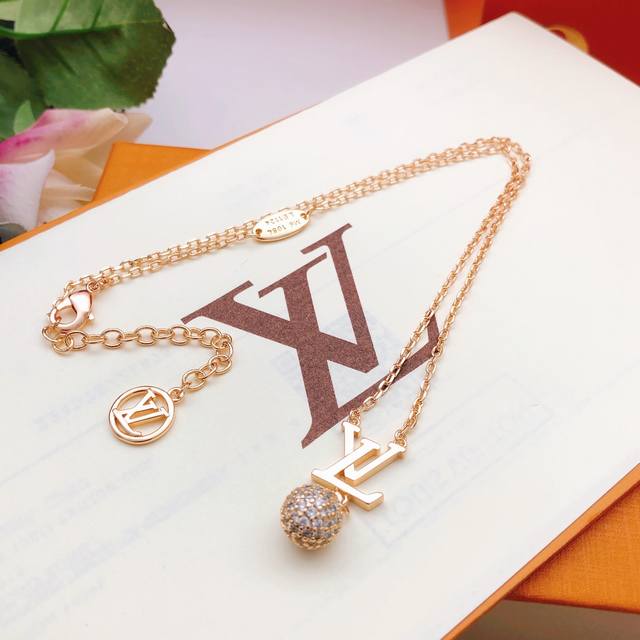 Lv* Latest Rose Gold Round Sphere Necklace, Batch Z, Brass Material