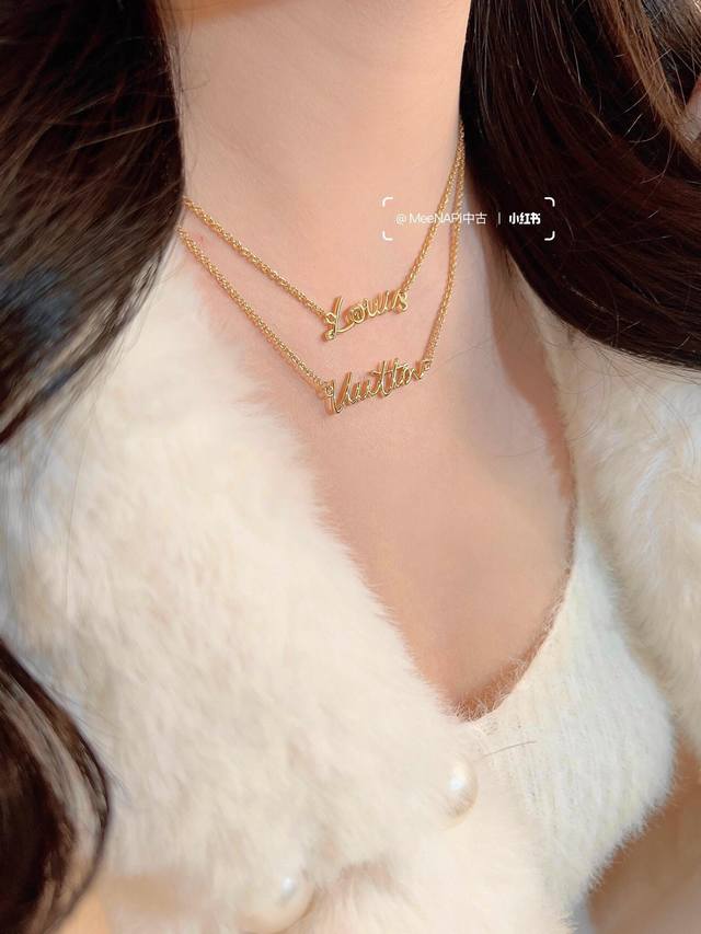 Lv* Latest Rose Gold Double-Layer Letter Necklace, Batch Z, Brass Material