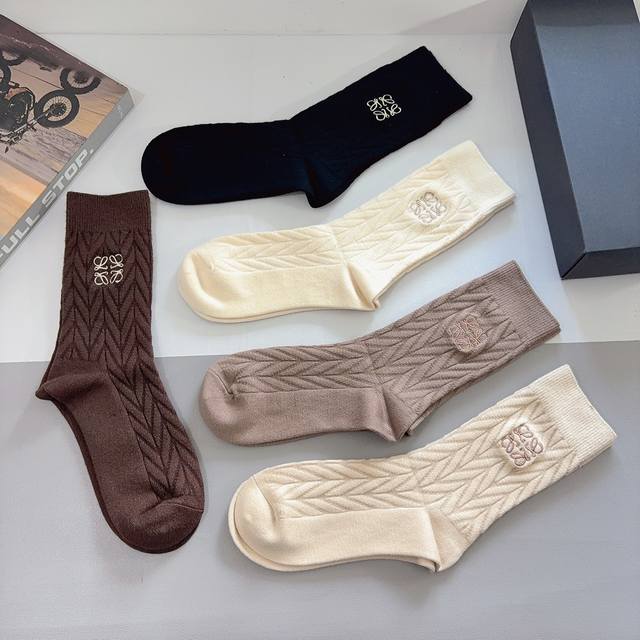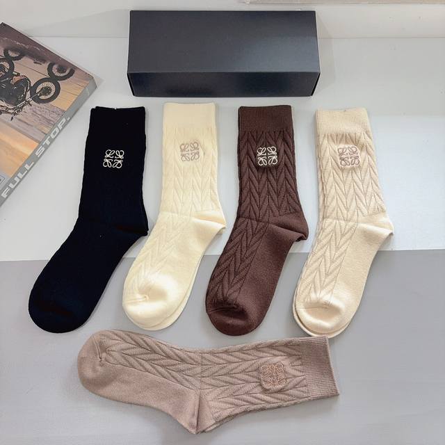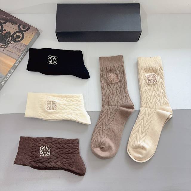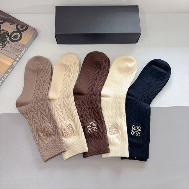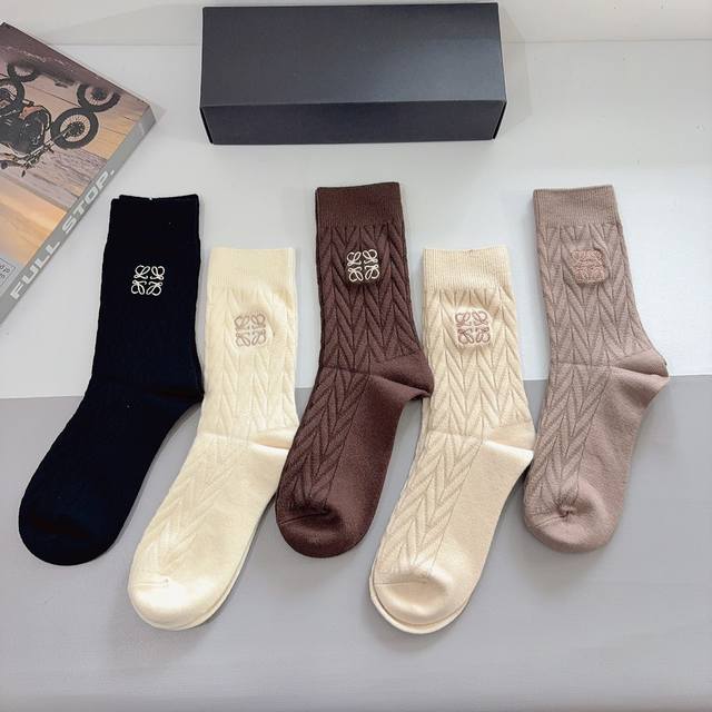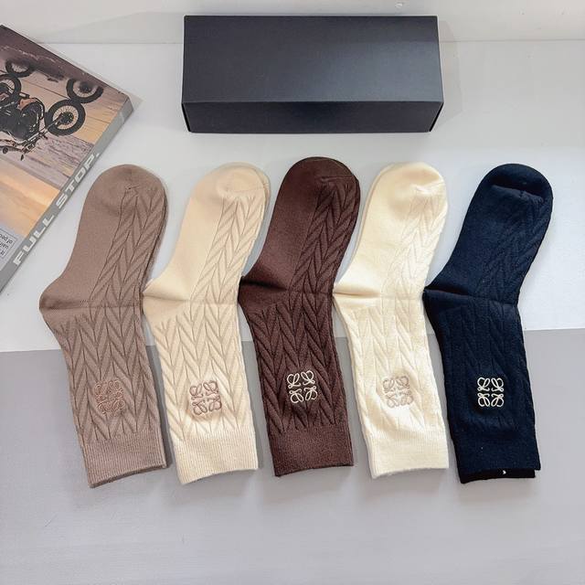comes with packaging. 5 pairs per box. Loewe high-end cashmere embroidered stoc