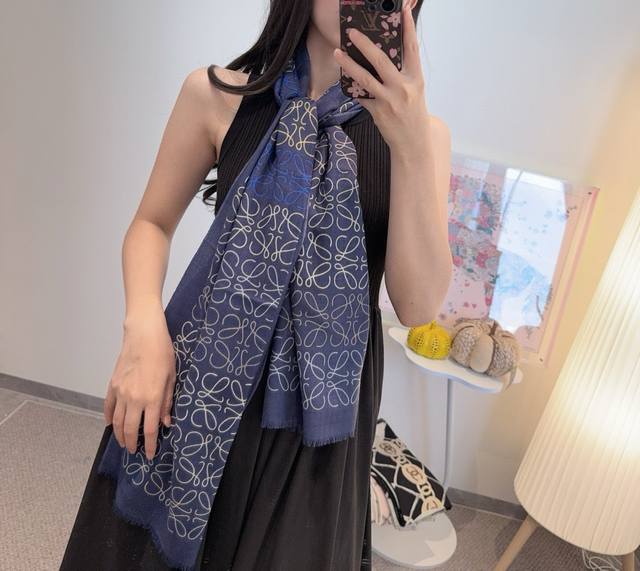 Loewe, as a top Spanish luxury brand, exudes a unique Spanish aristocratic aura, understated yet sophisticated. This scarf was a custom-made piece for the Barcelona window display and sold out within days of its release. It retails for 3470 RMB in China. It's extremely difficult to find. The overall design features the brand's most classic logo style. Made with original custom fabric, the feel is incredibly delicate. The hand-stitched tassels add a touch of luxury. Suitable for spring, summer, and autumn, it offers excellent value. Limited quantities available, first come, first served. Specifications: 45 x 200 cm. Material: 73% wool, 20% silk, 7% cashmere.