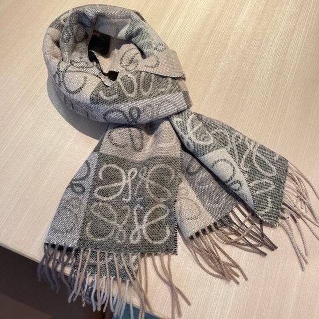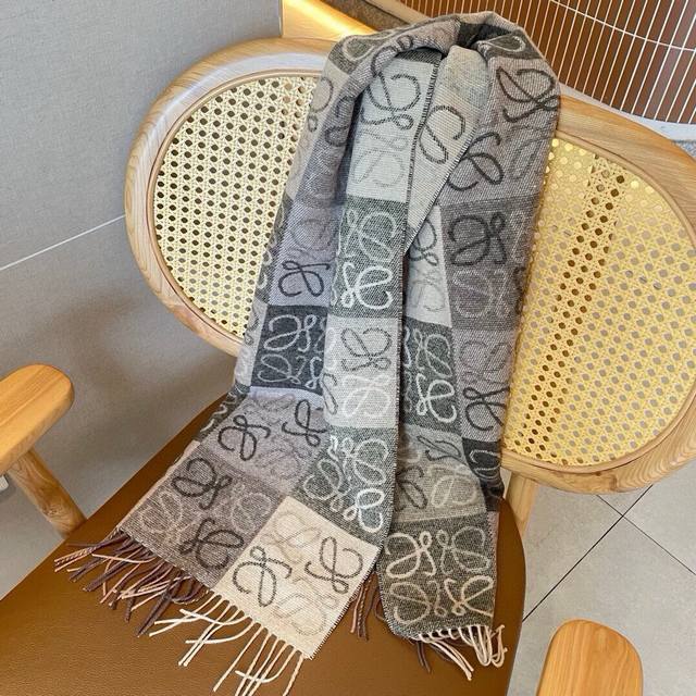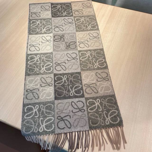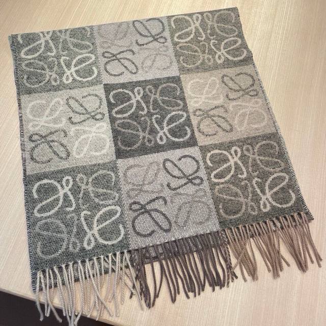 Loewe avocado-colored two-tone checkerboard long scarf. I was lucky enough to get this brand. It's incredibly rare, and domestic orders are rarely placed, so the selection is incredibly limited. As Spain's leading luxury brand, Loewe upholds tradition, craftsmanship, and passion, exuding a uniquely Spanish aristocratic aura! This scarf was custom-made for the window display of their Barcelona boutique! The overall design of the scarf reflects their signature logo. Dimensions: 40 x 200 cm, 90% wool + 10% cashmere.