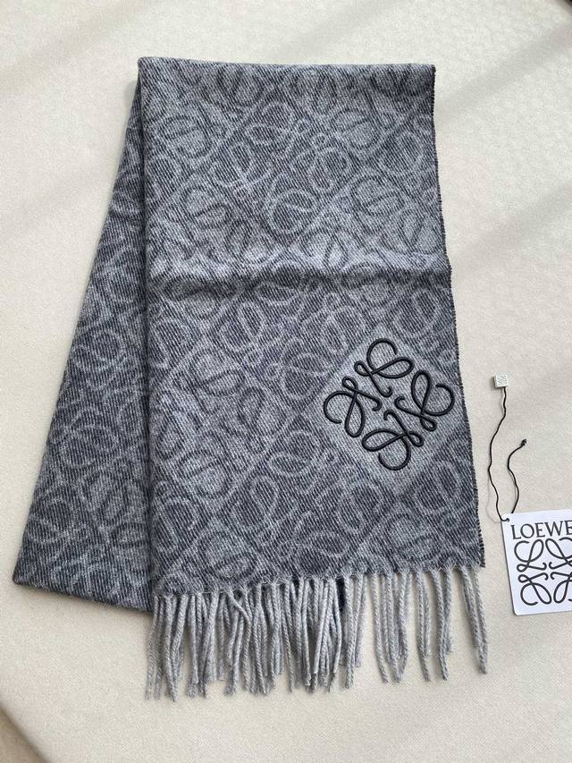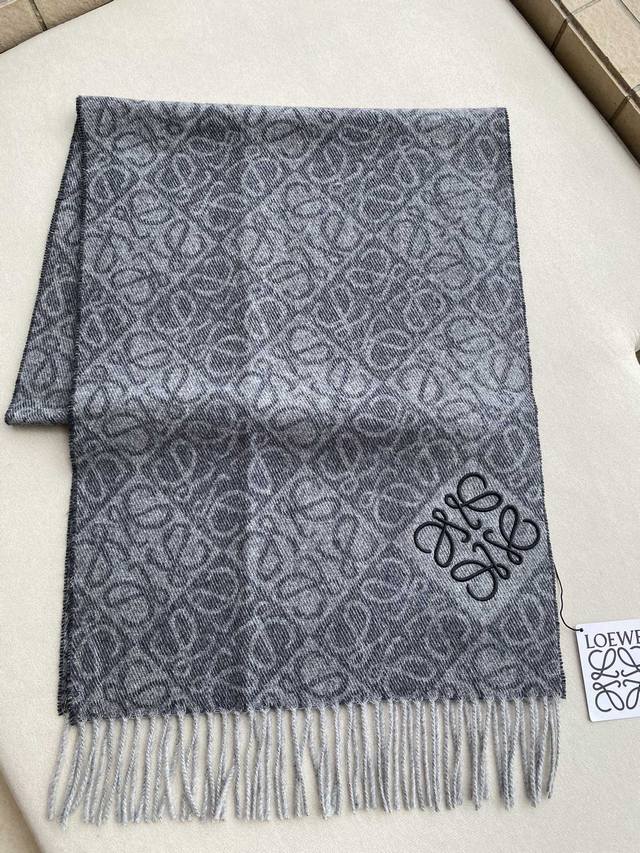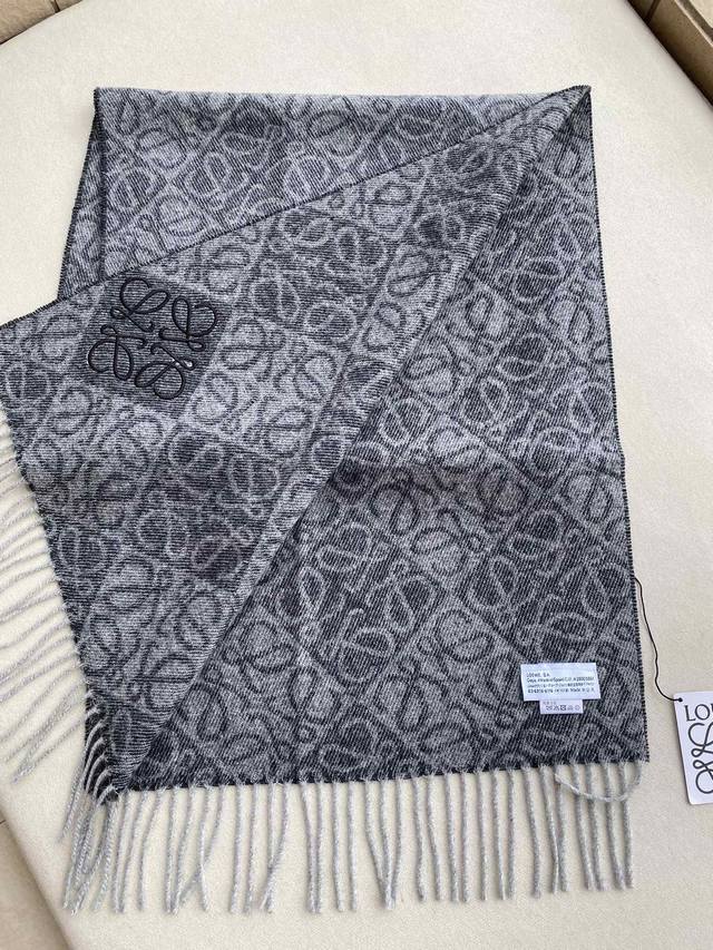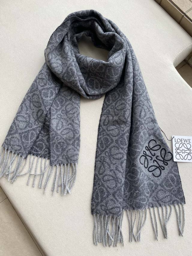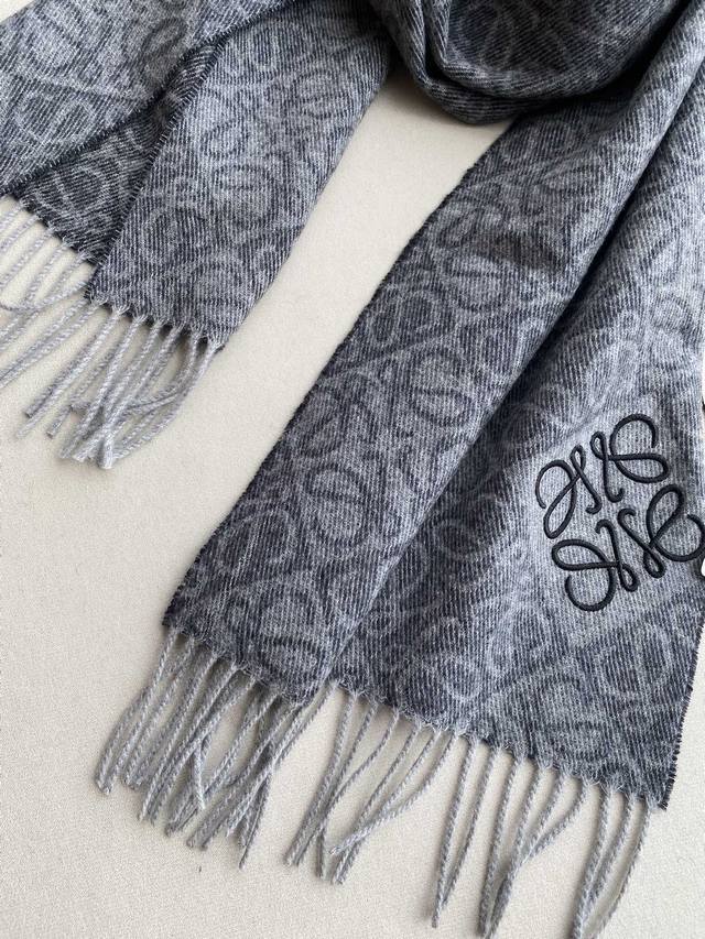 Loewe Checkerboard Latest Embroidery Design 180*40cm 90% wool 10% cashmere Medium weight double-faced wool and cashmere blend checkerboard scarf.