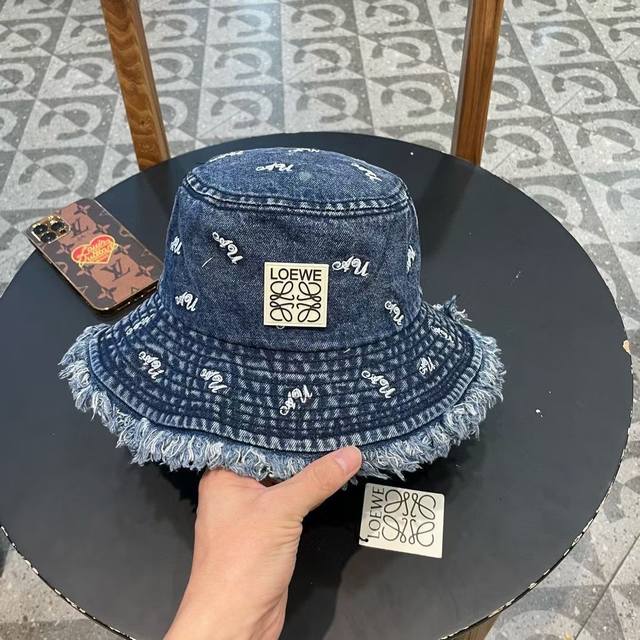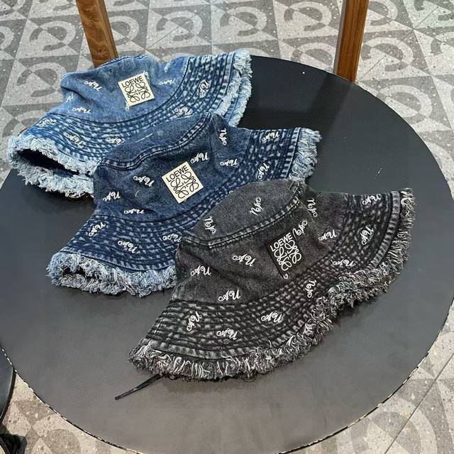 Loewe summer raw edge retro washed denim fisherman hat female gradient design basin hat male fashion couple sun hat