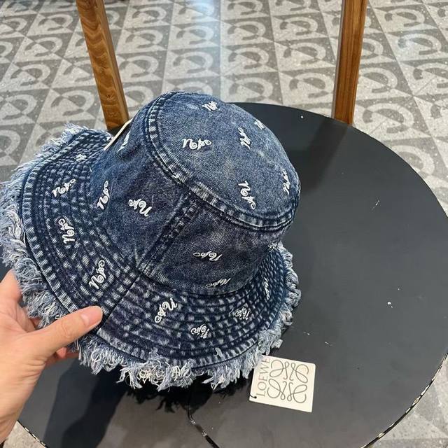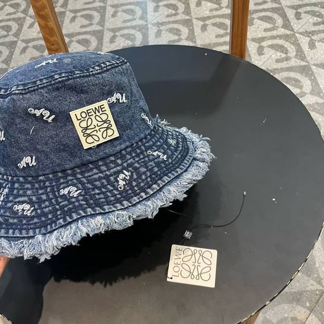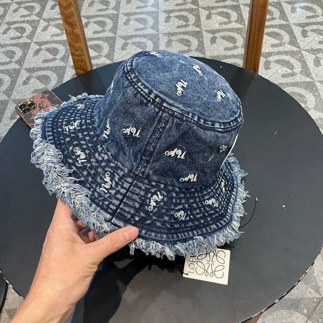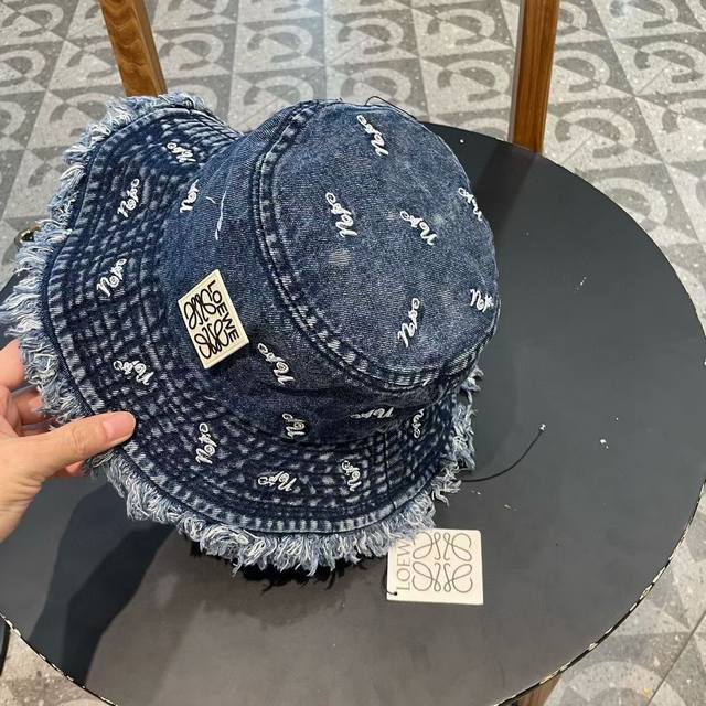 Loewe summer raw edge retro washed denim fisherman hat female gradient design ba