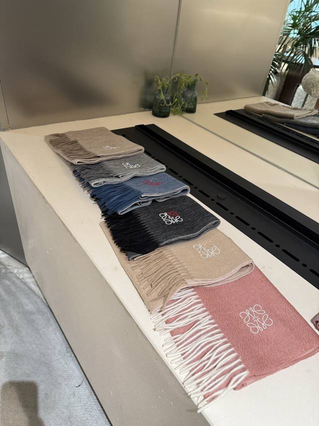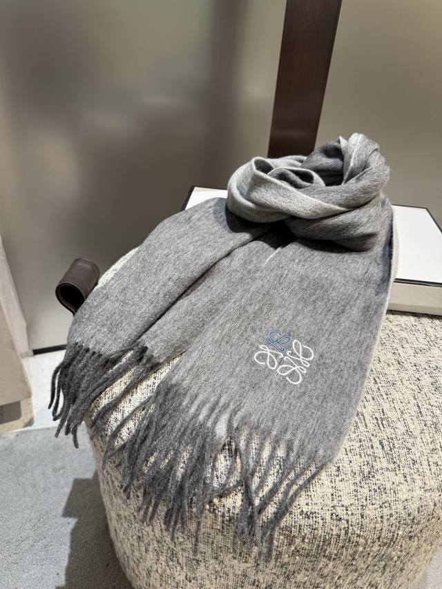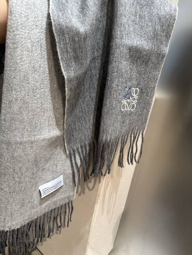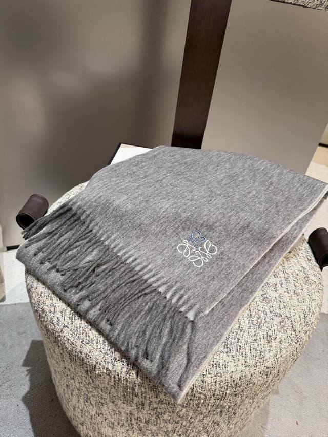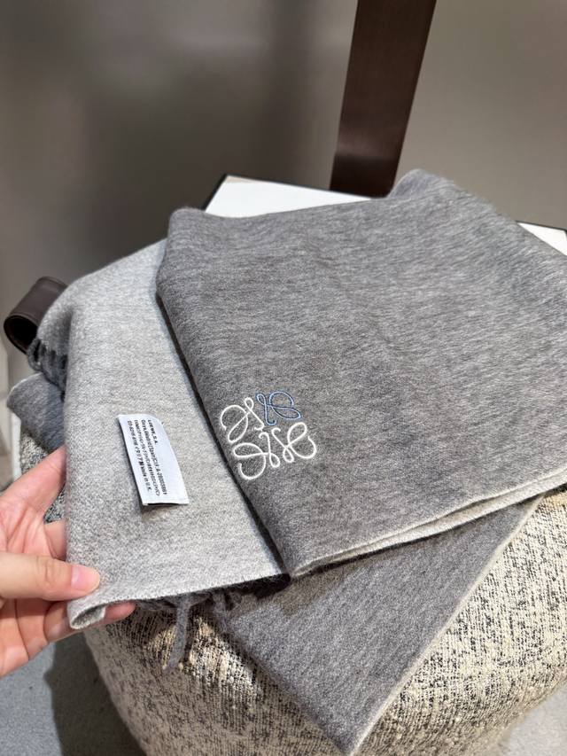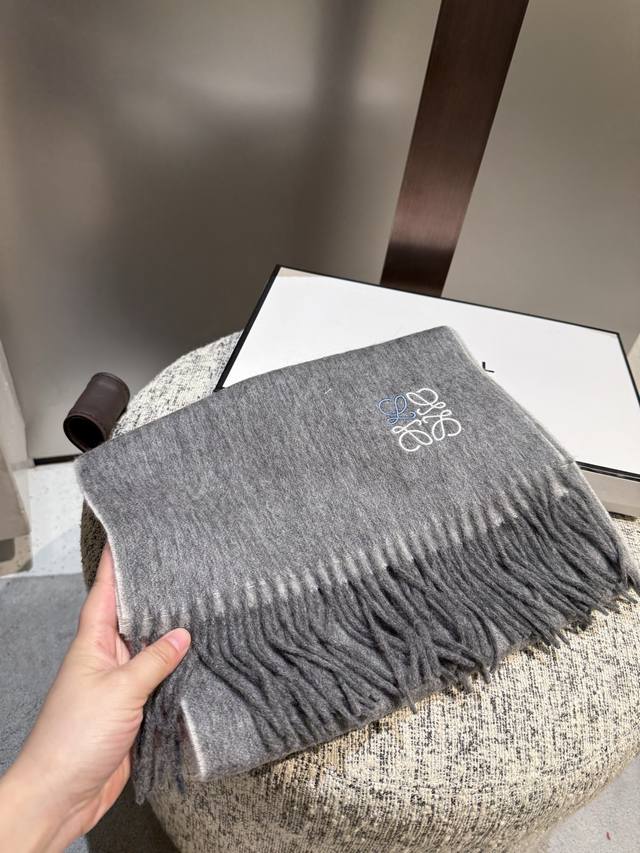 Loewe. Unisex scarf, highly recommended for personal use, a rare high-end men's style! A great deal for family members! A truly exquisite scarf~ I love the fabric, it's incredibly soft, delicate, and comfortable, with a subtle water ripple texture! Stylish and simple, a super handsome color scheme, a style any guy would love. The small logo is a very delicate embellishment, textured yet understated~ The bulk order was shipped several months ago~ Only a few left over for everyone~ A classic men's 30cm wide cashmere scarf! Unisex style, size 35. Total length including tassels: cm. Suitable for both formal and casual wear~ Fold it in half and wear it as a drape or wrap it around your neck, perfectly gentlemanly and stylish~ A warm and sophisticated look!