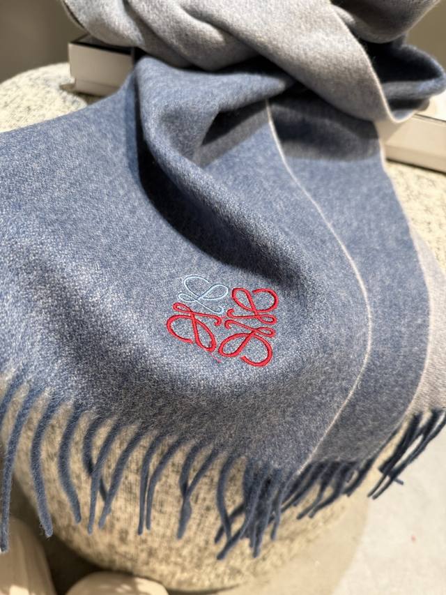 Loewe. Unisex scarf, highly recommended for personal use, a rare high-end men's style! A great gift for family members! A truly exquisite scarf~ I love the fabric, it's incredibly soft, delicate, and comfortable, with a subtle water ripple texture! Stylish and simple, a super handsome color scheme, a style any guy would love. The small logo is a very delicate embellishment, textured yet understated~ The bulk order was shipped several months ago~ Only a few left over for everyone~ A classic men's 30cm wide cashmere scarf! Unisex style, size 35. Total length including tassels: cm. Suitable for both formal and casual wear~ Fold it in half and wear it as a drape or wrap it around your neck, perfectly gentlemanly and stylish~ Warm and sophisticated!
