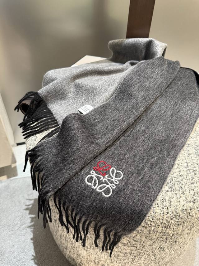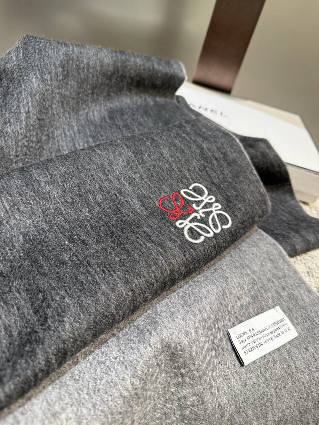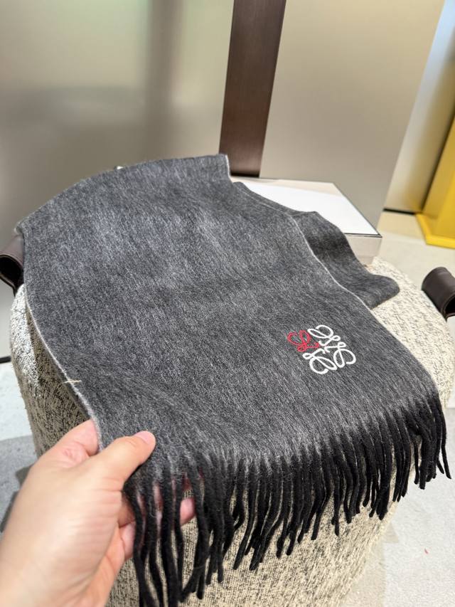 Loewe. Unisex scarf, highly recommended for personal use, a rare high-end men's style! A great deal for family members! A truly exquisite scarf~ I love the fabric, it's incredibly soft, delicate, and comfortable, with a subtle water ripple texture! Stylish and simple, a super handsome color scheme, a style any guy would love. The small logo is a very delicate embellishment, textured yet understated~ The bulk order was shipped several months ago~ Only a few left over for everyone~ A classic men's 30cm wide cashmere scarf! Unisex style, size 35. Total length including tassels: cm. Suitable for both formal and casual wear~ Fold it in half and wear it as a drape or wrap it around your neck, perfectly gentlemanly and stylish~ A warm and sophisticated look!