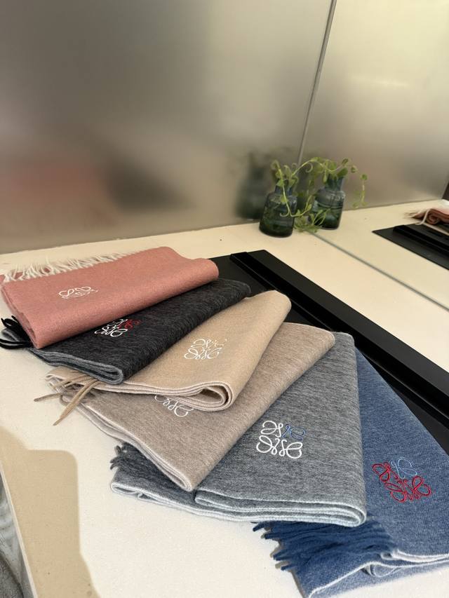 Loewe. Unisex scarf, highly recommended for personal use, a rare high-end men's style! A great deal for family members! A truly exquisite scarf~ I love the fabric, it's incredibly soft, delicate, and comfortable, with a subtle water ripple texture! Stylish and simple, a super handsome color scheme, a style any guy would love. The small logo is a very delicate embellishment, textured yet understated~ The bulk order was shipped several months ago~ Only a few left over for everyone~ A classic men's 30cm wide cashmere scarf! Unisex style, size 35. Total length including tassels: cm. Suitable for both formal and casual wear~ Fold it in half and wear it as a drape or wrap it around your neck, perfectly gentlemanly and stylish~ A warm and sophisticated look!
