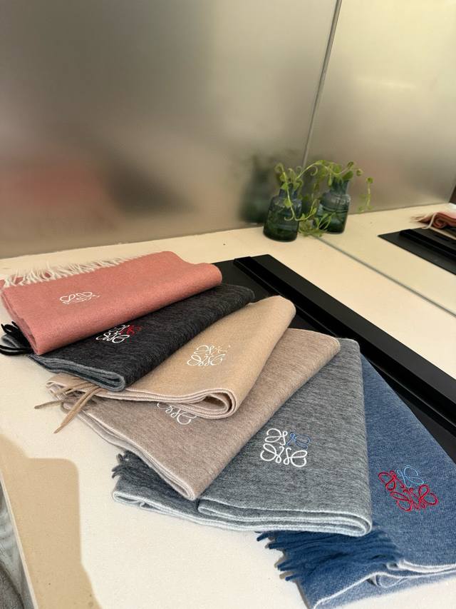 Loewe. Unisex scarf, highly recommended for personal use, a rare high-end men's style! A great gift for family members! A truly exquisite scarf~ I love the fabric, it's incredibly soft, delicate, and comfortable, with a subtle water ripple texture! Stylish and simple, a super handsome color scheme, a style any guy would love. The small logo is a very delicate embellishment, textured yet understated~ The bulk order was shipped several months ago~ Only a few left over for everyone~ A classic men's 30cm wide cashmere scarf! Unisex style, size 35. Total length including tassels: cm. Suitable for both formal and casual wear~ Fold it in half and wear it as a drape or wrap it around your neck, perfectly gentlemanly and stylish~ Warm and sophisticated!