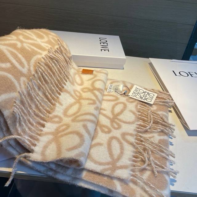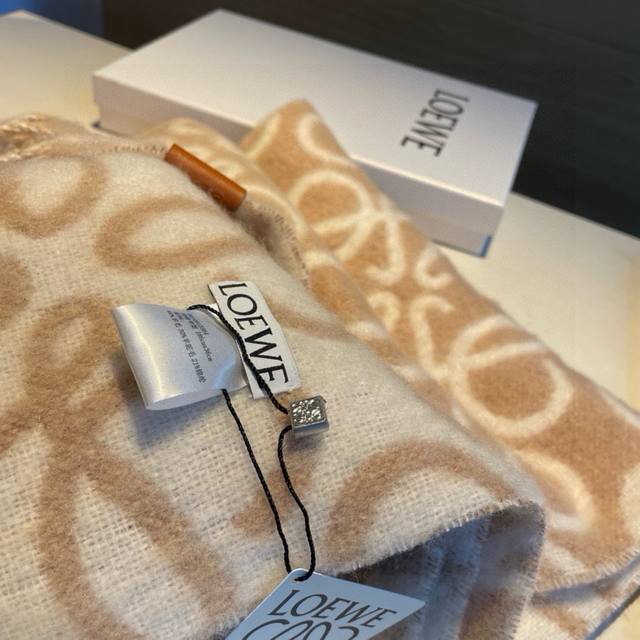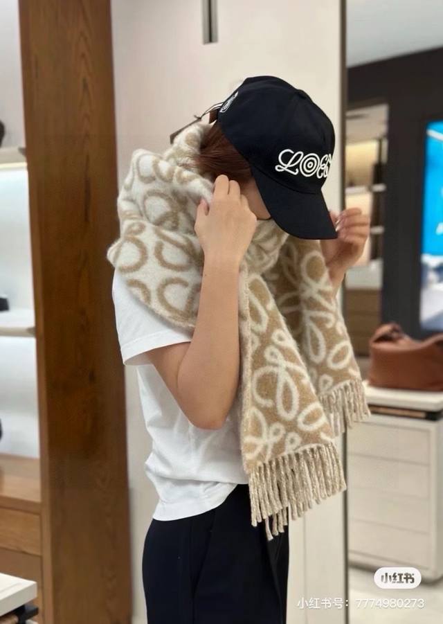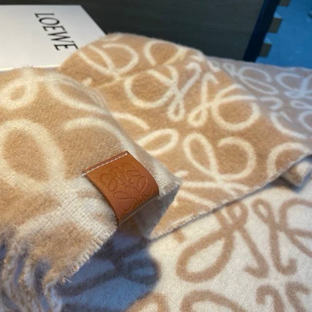 Loewe's new wool and mohair scarf is a great outfit for early autumn milk tea girls, perfect for old money. Early autumn and milk tea colors go really well together. The earth tones are gentle and eye-catching, and the look is super high. The dreamy color combination of wool and mohair has tassels on both ends and the fabric is super comfortable. Cowhide leather logo embossed patch