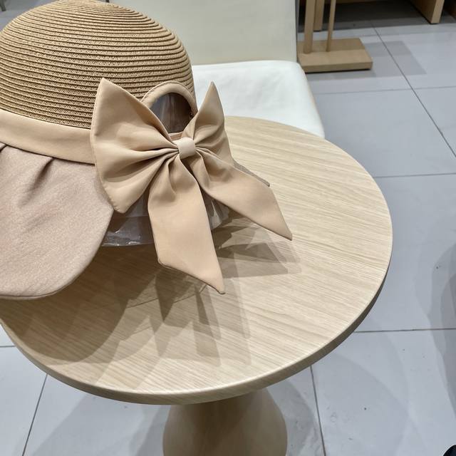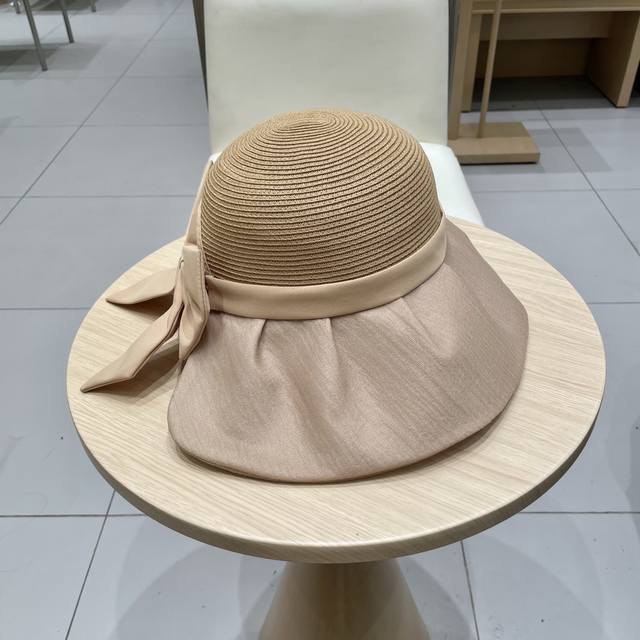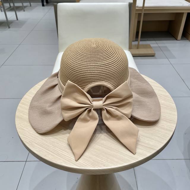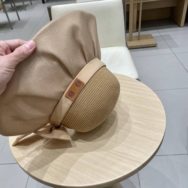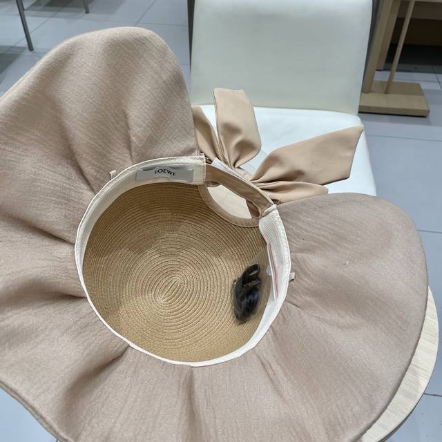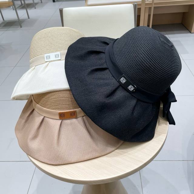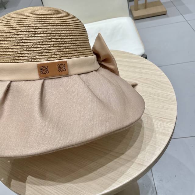 New! Loewe Loewe Spring and Summer Bow Splicing Fisherman Hat Women's Western Style Sun Hat Holiday Elegant Sun Hat Large Brim Split Basin Hat