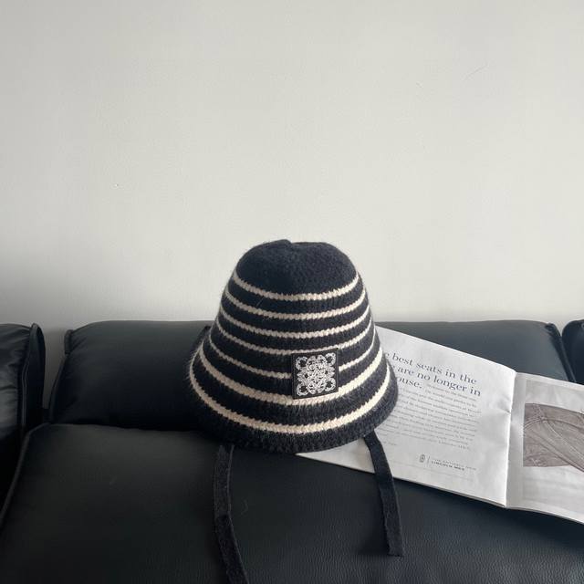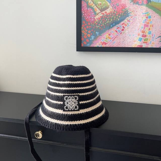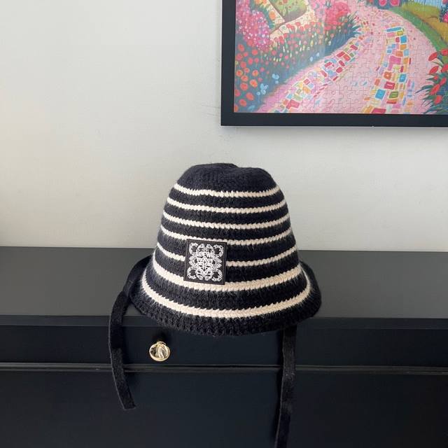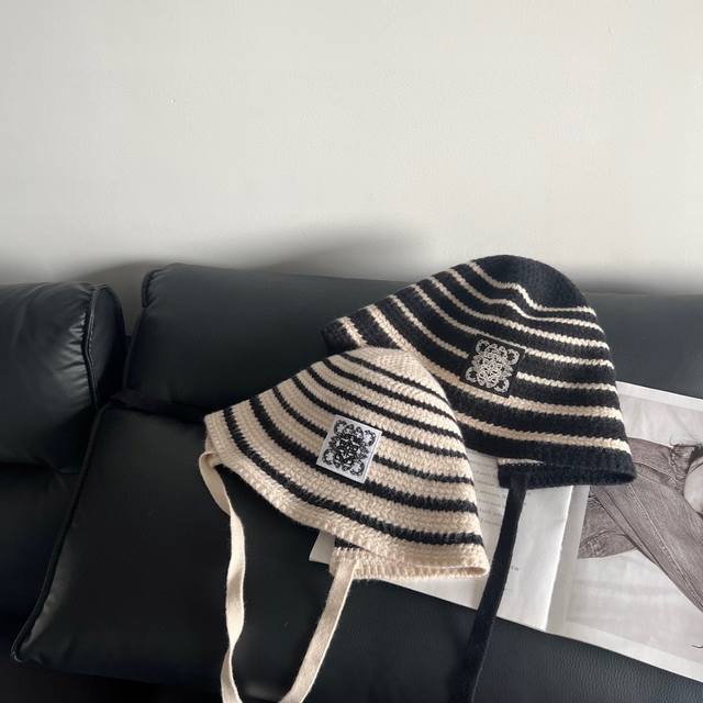 / Special dust bag Loewe 2025 autumn and winter new irregular striped bucket hat,