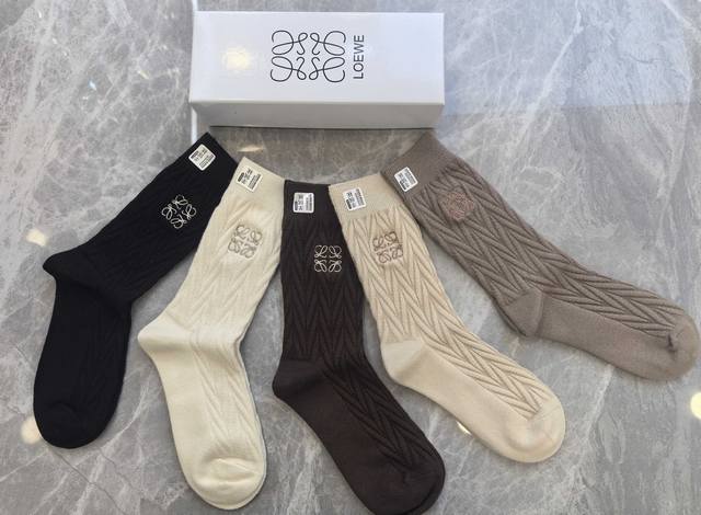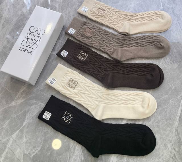Loewe's new cashmere mid-length stacked socks! Five pairs per box, counter-matched tube socks, big-name streetwear, a must-have for fashionistas, super easy to match