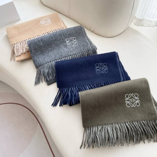 Top-quality unisex Loewe scarf. I was lucky enough to get my hands on this brand's item; it's truly rare, as they seldom take orders domestically, and the selection is incredibly limited. As a top Spanish luxury brand, Loewe upholds tradition, craftsmanship, and passion, exuding a unique Spanish aristocratic aura! This particular scarf is a custom-made piece for the Barcelona boutique window display! The overall design features their brand's most classic logo style. Size: 38 x 180 cm, Material: 100% cashmere.