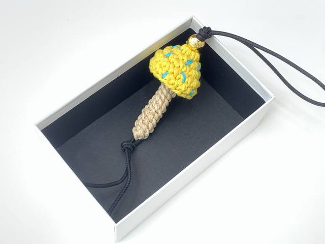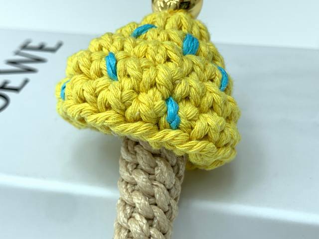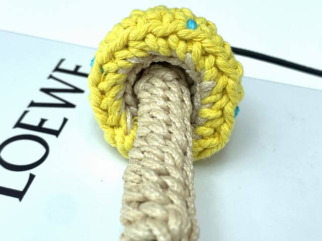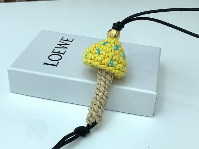 / Loewe mushroom-shaped pendant, hand-woven yellow mushroom adorned with blue spot