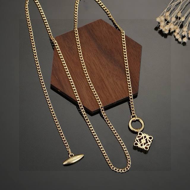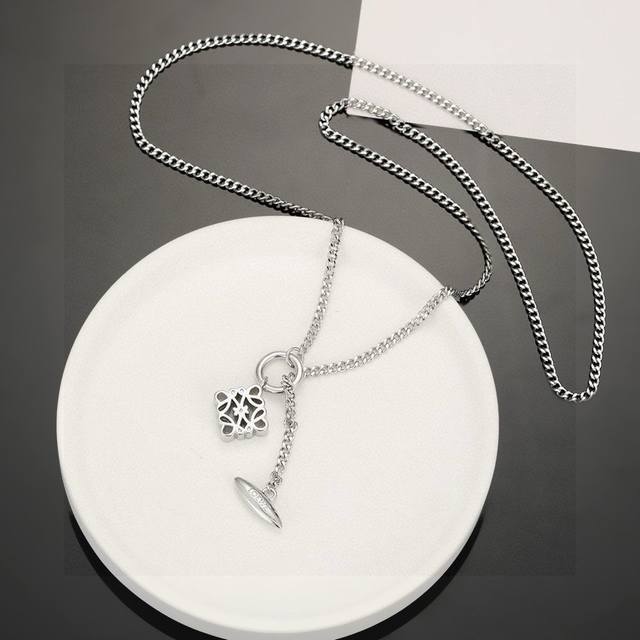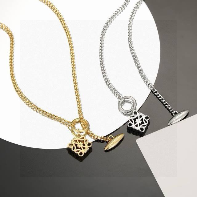This Loewe design is truly amazing, incredibly artistic! Its logo is a masterpiece! This Loewe necklace features a floral line design! The details are exquisitely smooth! It's incredibly versatile and goes with all kinds of outfits! Gold and silver two-tone necklace.