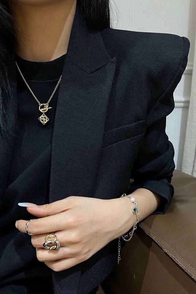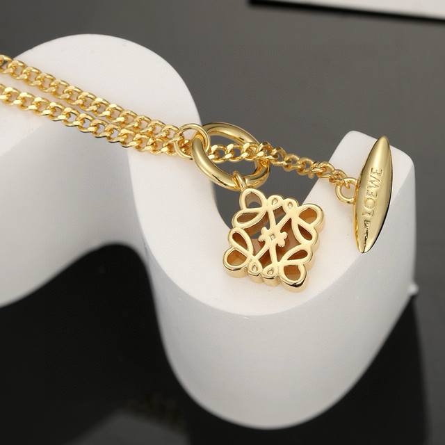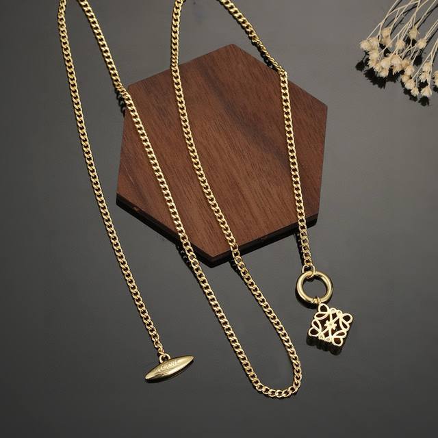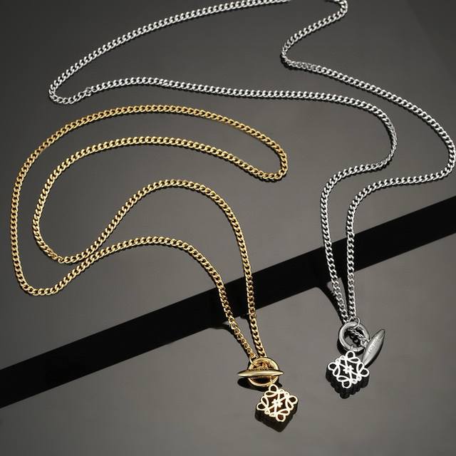 This Loewe design is truly amazing, incredibly artistic! Its logo is a masterpiece! The Loewe necklace with its linear floral pattern has exquisitely smooth details! It's incredibly versatile and goes with all kinds of outfits! Gold and silver two-tone necklace.