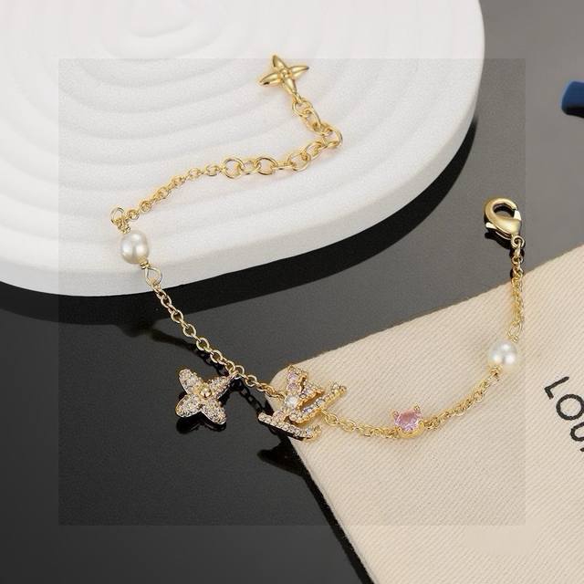 Exquisitely crafted Louis Vuitton bracelet, inspired by the iconic LV Twig necklace. The polished finish naturally embodies the classic LV lettering, exuding the brand's style. Adjustable chain, a classic and versatile bracelet favored by celebrities.