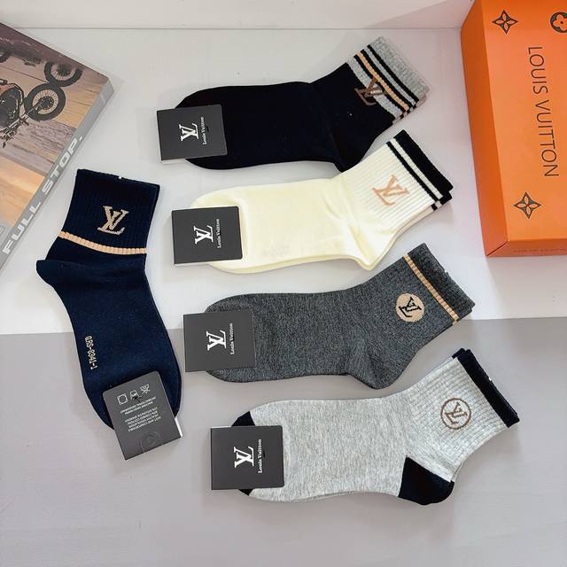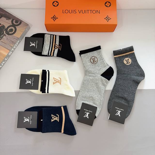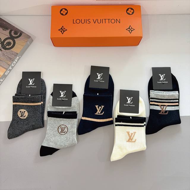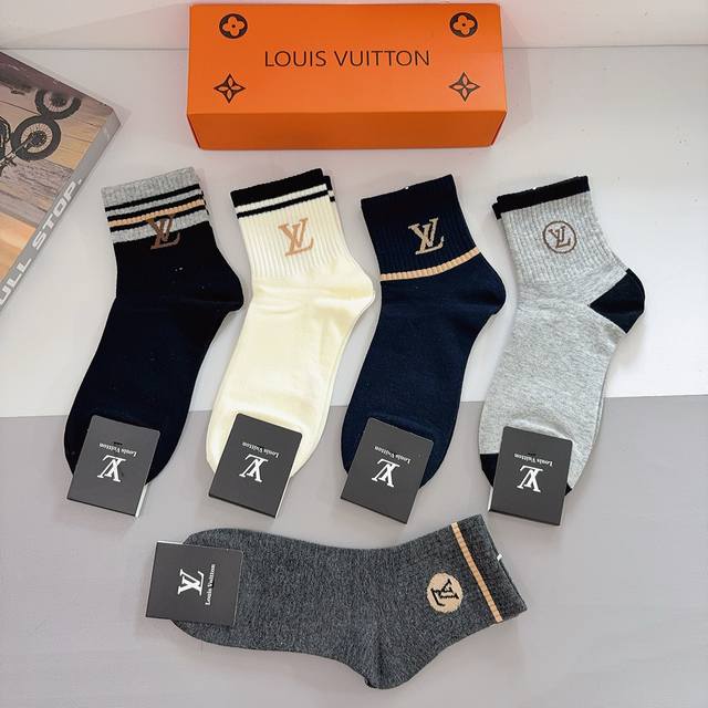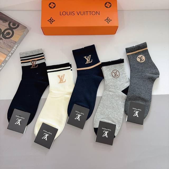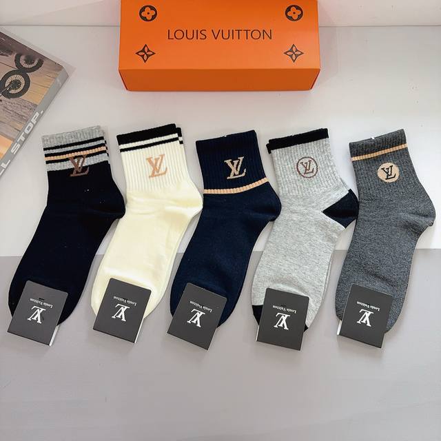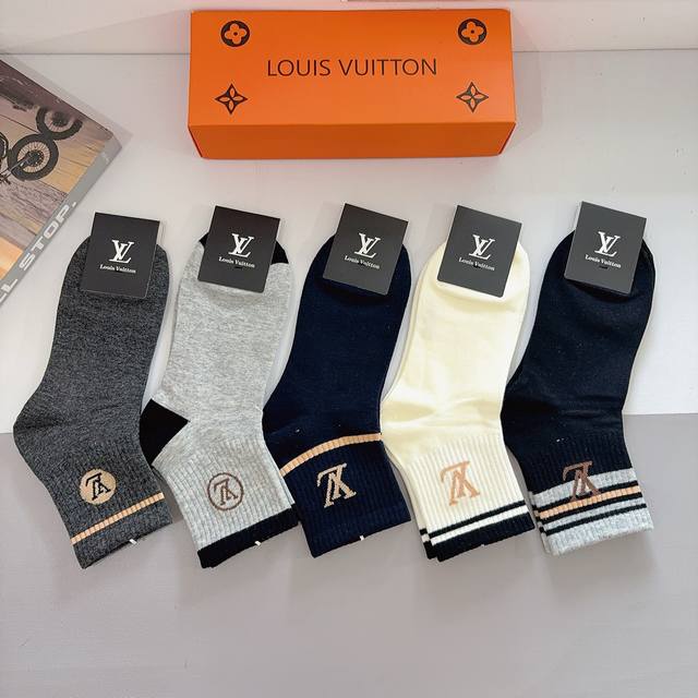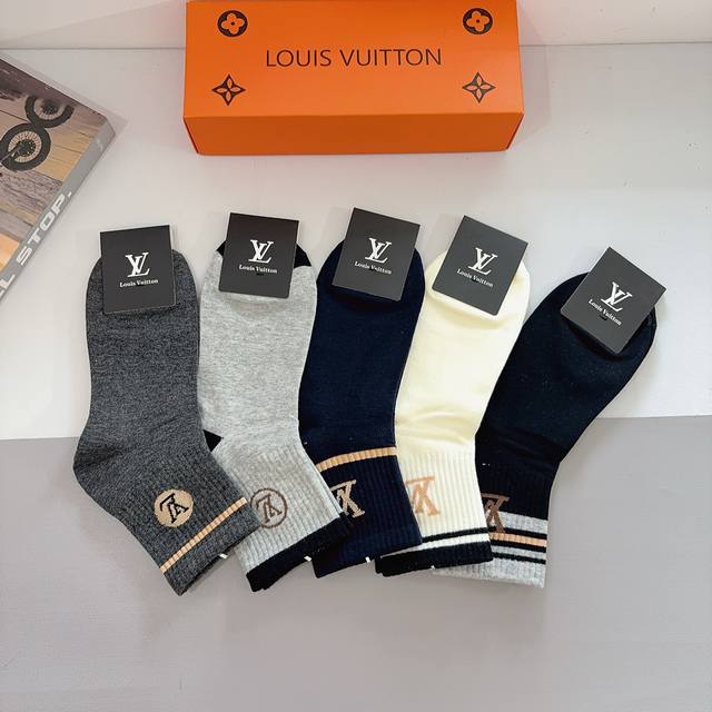 5 pairs of Louis Vuitton men's mid-calf socks (packaged) - super popular style, made of pure cotton. A must-have for trendsetters, stylish and versatile! You deserve to own them! Super soft material, comfortable and breathable!