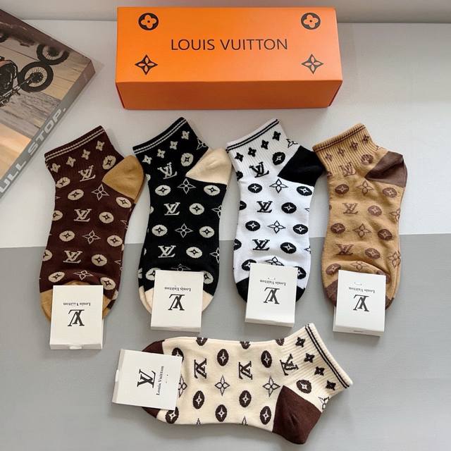 5 pairs per box (with packaging) - Louis Vuitton super popular pure cotton boat