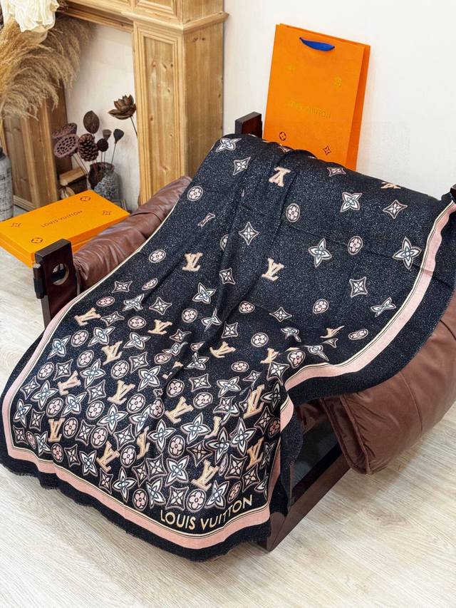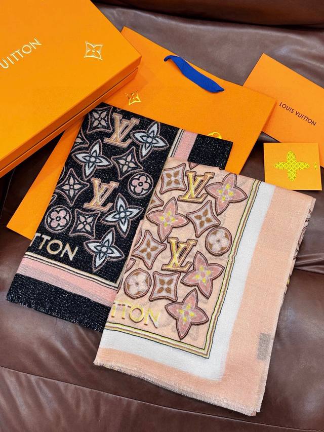 A luminous and sparkling scarf from the And Away series, paying homage to Louis Vuitton's travel heritage. It depicts the Monogram carrying Louis Vuitton handbags and trunks rising into the sky! Made of cashmere, it exudes understated luxury. A new boutique item, the fabric is designed for a refined look, with a crisp feel. High-end designers have considered both the fit and color saturation, resulting in fresh, rich colors that are exquisitely elegant and sophisticated! Good things don't wait, so don't miss out! Order now! Size: 100*200 DDD