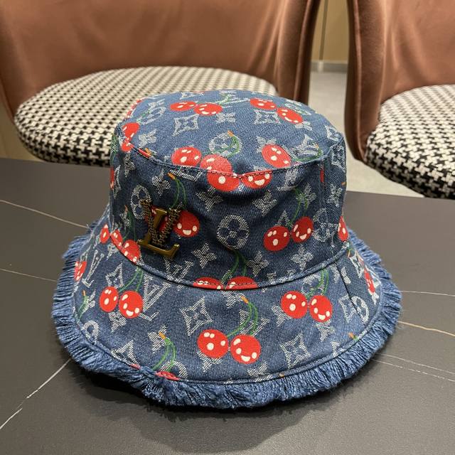 Baseball cap. Bucket hat Lv with Louis Vuitton classic original bucket hat, top version, original denim jacquard fabric, lightweight and breathable! Excellent quality, basic head circumference 57, fashionable and versatile.