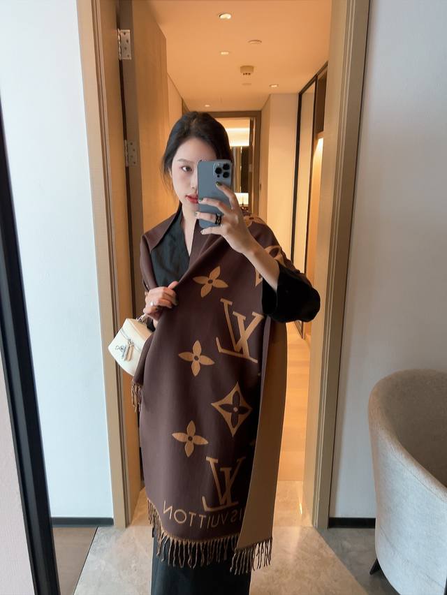 Cashmere blend temperament This piece is absolutely red. The classic logo is matched with the old flower four-leaf clover at the bottom. Louis Vuitton Paris has the same LV cashmere scarf shawl as Li Xiaolu and Huo Siyan. The classic four-leaf clover pattern is soft and the fabric is soft. Celebrities Ady An, Huo Siyan, Yang Mi, and Li Xiaolu also wear the same shawl. [Smile][Smile
