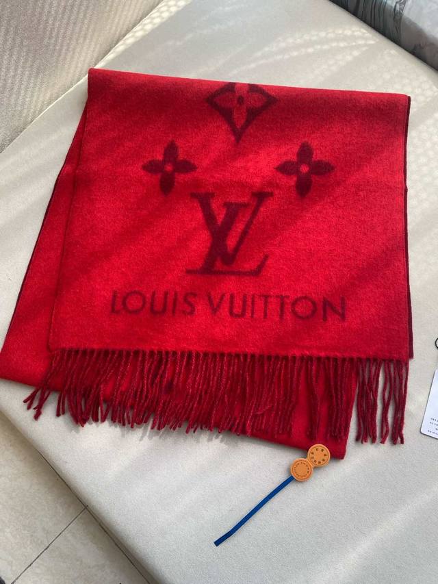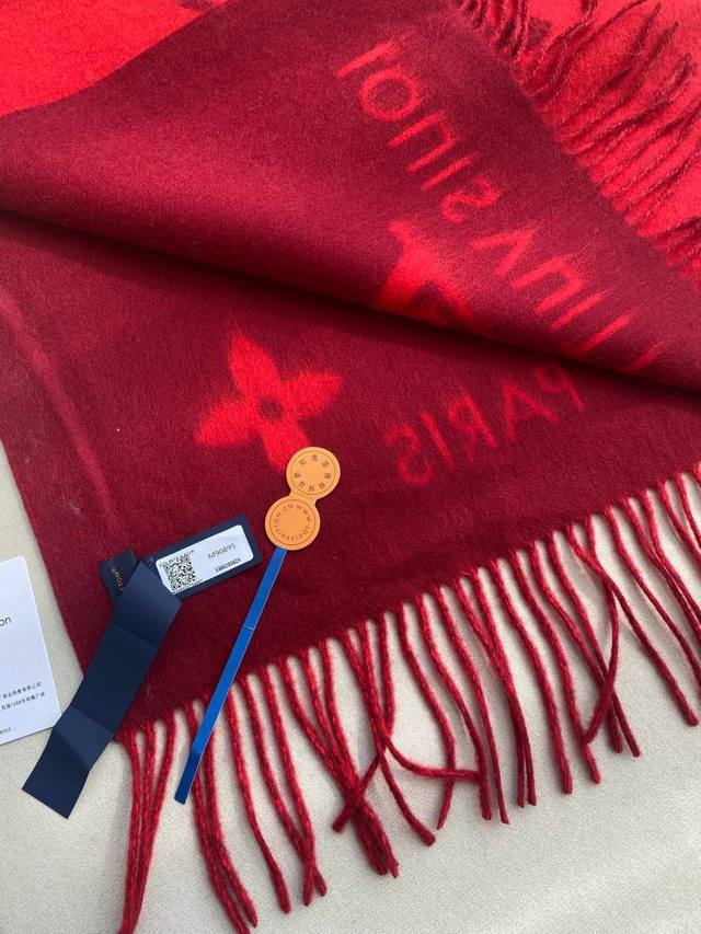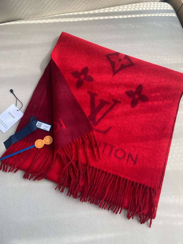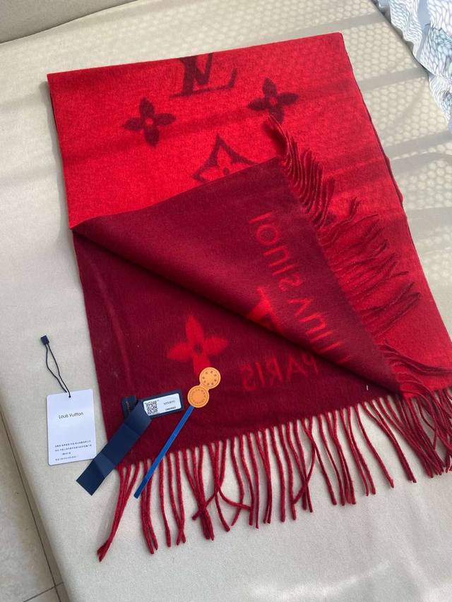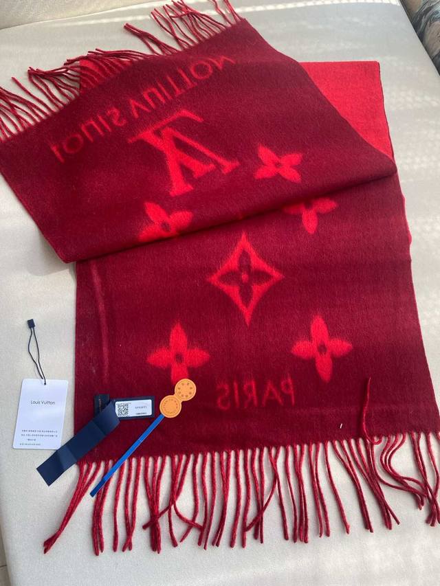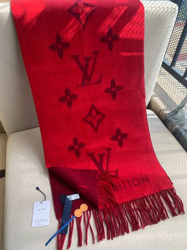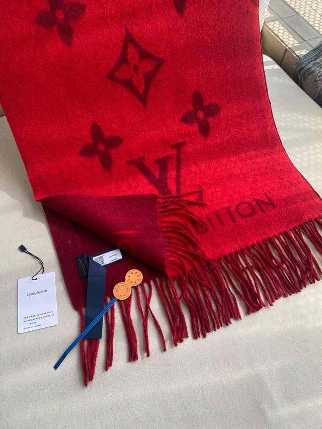 Chip Edition 1V Double-Sided Shawl Scarf 190*45cm 100% Cashmere Reykjavik Scarf is made from rich cashmere and woven with a jacquard technique to create an all-over Monogram floral and Lv monogram pattern. The contrasting colors create a vibrant and elegant look, adding a touch of romance to any winter look.