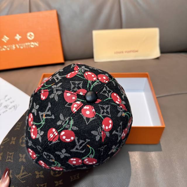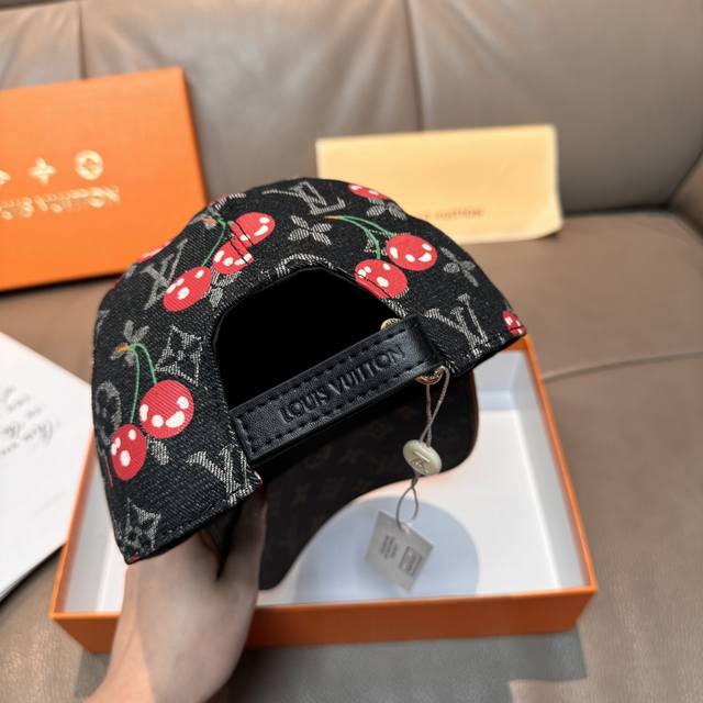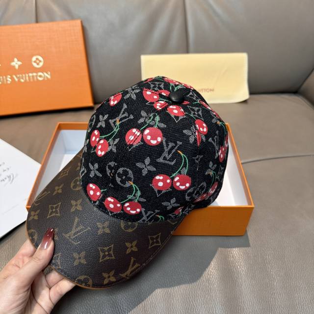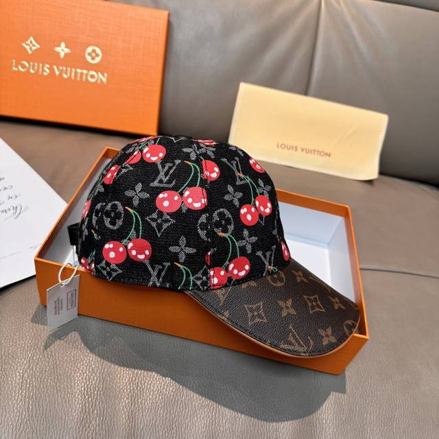 comes with a box bag, Lv Louis Vuitton new original baseball cap, Lv small cherry, counter 1:1 mold opening and customization, original canvas fabric + first layer cowhide, light and breathable! Excellent quality, basic head circumference 56, patch is adjustable.
