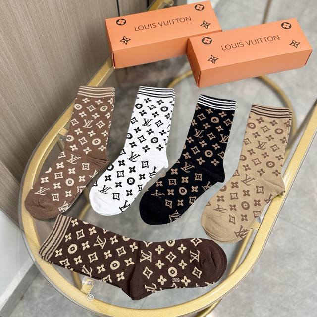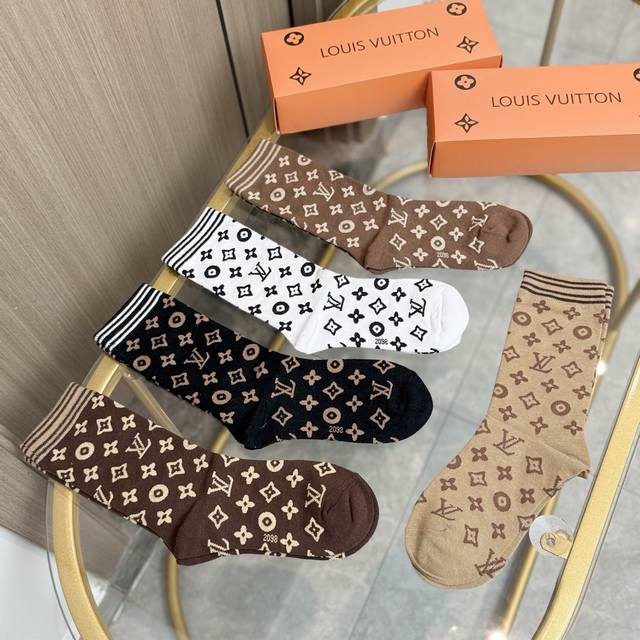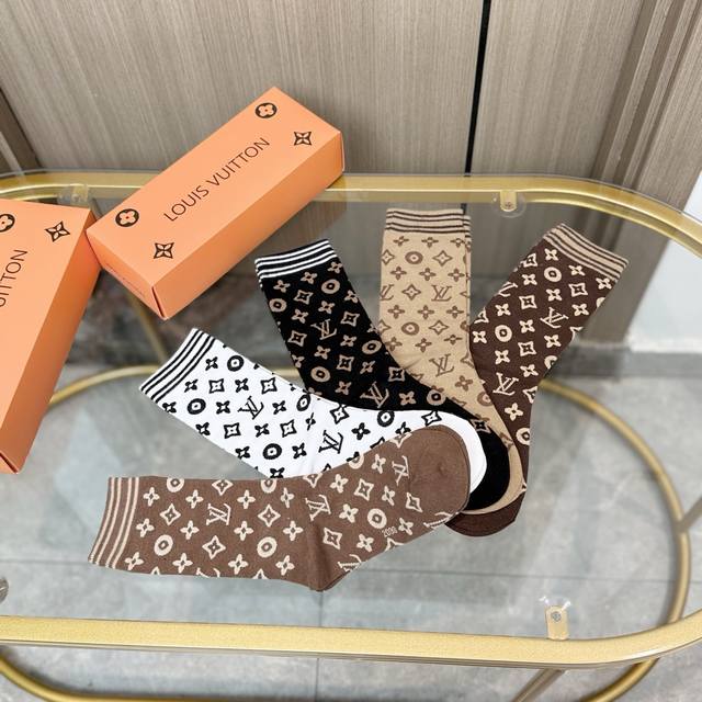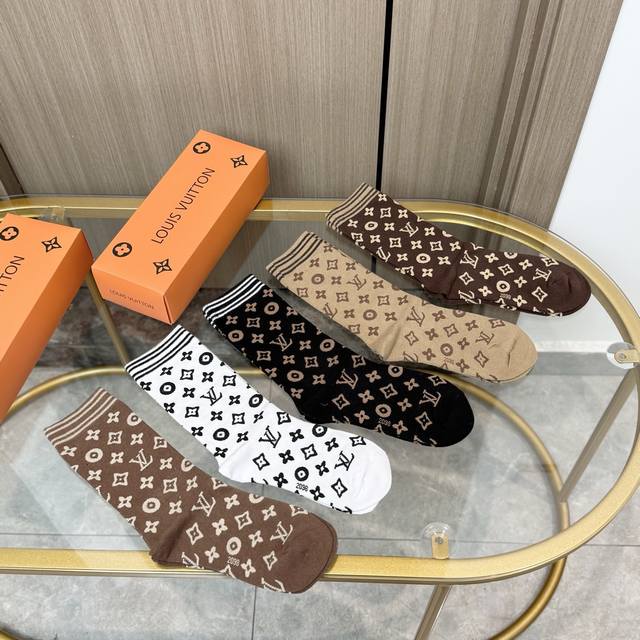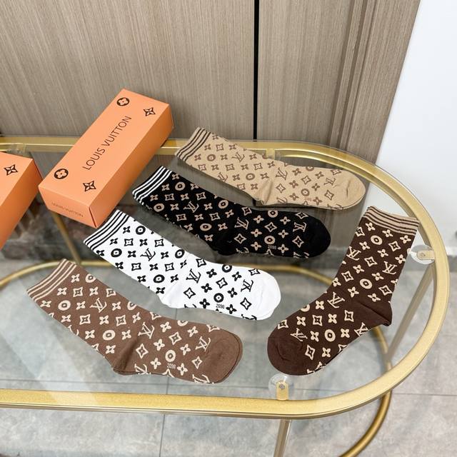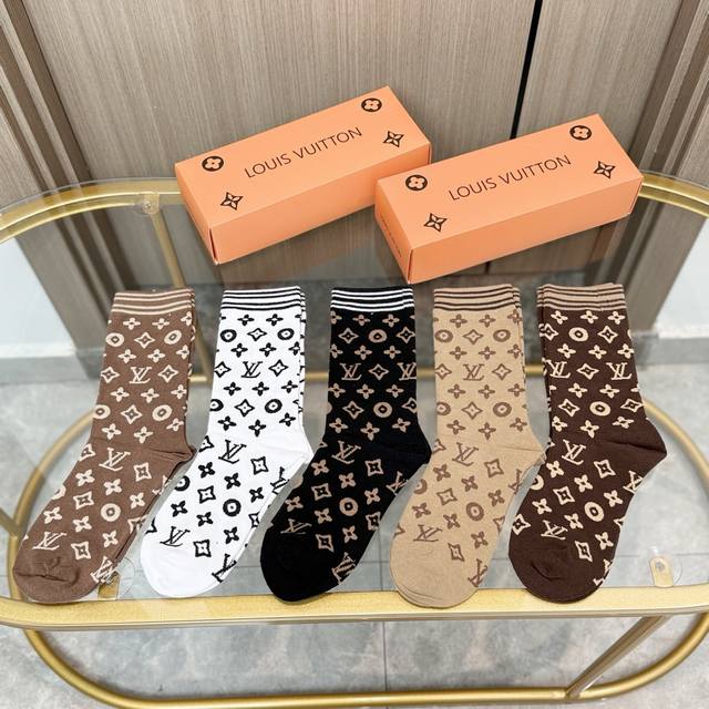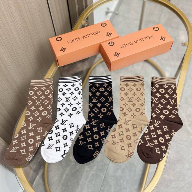 Comes with a box of five pairs of LV Louis Vuitton's popular stockings, high-end version. They are so beautiful! European and American brand stockings are a must-have for fashionistas. They are super stylish and fashionable when paired together. Recommended! A must-have fashionable item!