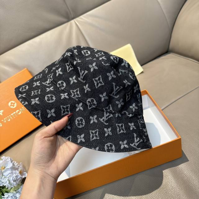 Comes with a packaging bag. LV classic style original single-piece fisherman's hat, top-quality version, 1:1 mold made from the boutique. Original denim jacquard fabric + pure cotton lining, lightweight and breathable! Superb quality, standard head circumference 57cm, fashionable and versatile. DDD