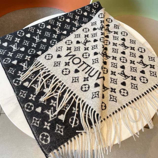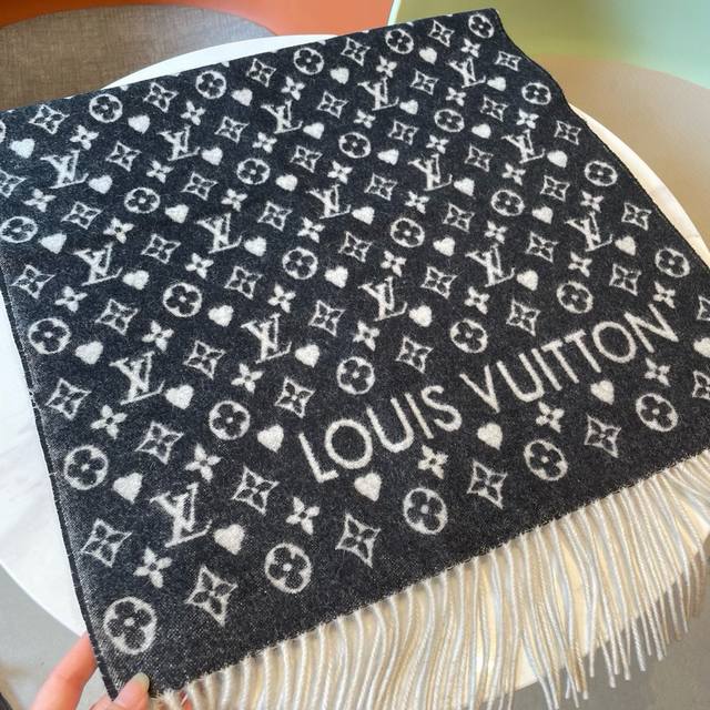 Dalui's classic small logo limited edition cashmere scarf with hearts. This is super cute and full of little hearts, both playful and gentle. Available in classic black and gray and a gentle milk tea color, this is a must-have item that's always waiting in line at the counter. It's a style you can't buy even if you have money. This year's best-looking and trendy scarf and shawl, a hot item worn by celebrities this winter. % cashmere, size: 45cm, just the right size for both scarf and shawl.