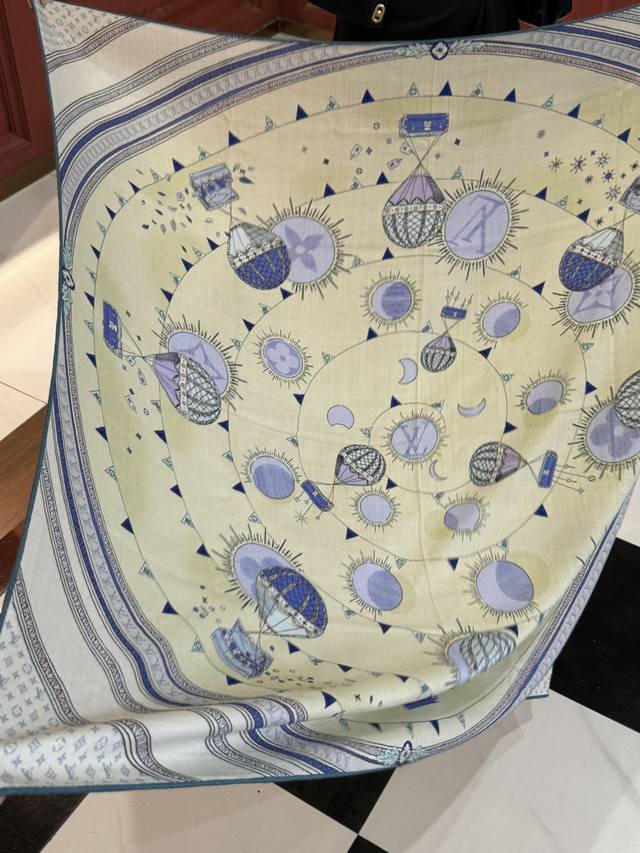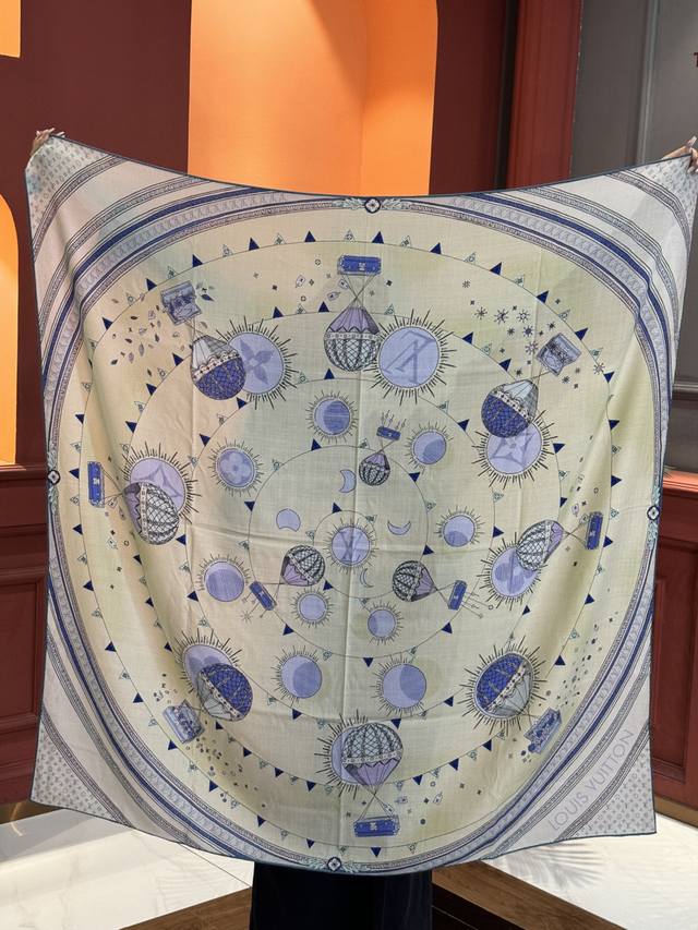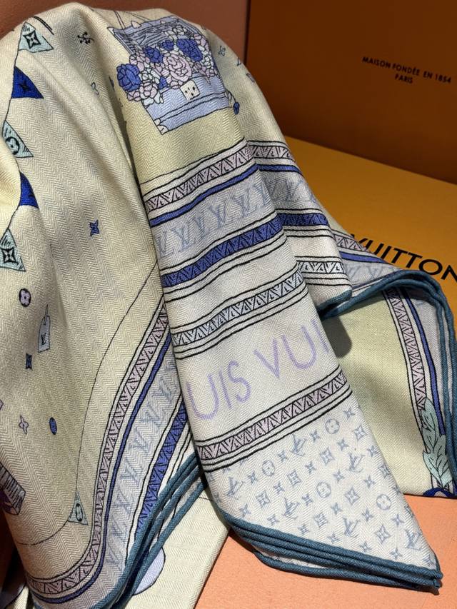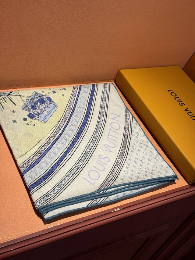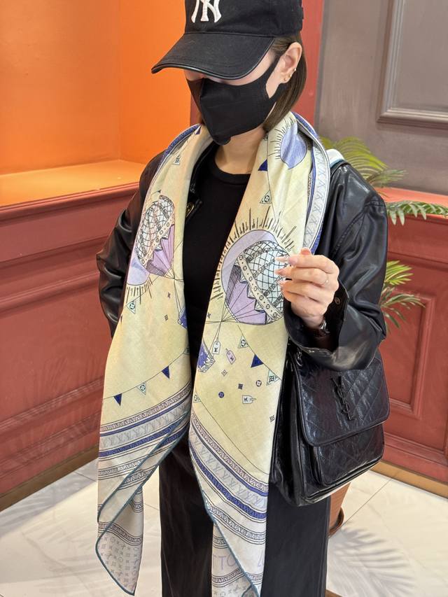 Double-sided, same color, original single-piece Lv140Cm velvet scarf, hot air balloon. This scarf is a new addition to the U-Price And Away series, paying tribute to Louis Vuitton's travel heritage. The silkscreen printing process depicts rich details, showing a Monogram hot air balloon carrying Louis Vuitton handbags and suitcases rising into the sky! Made of top-grade twill silk cashmere with hand-rolled edges, it exudes a luxurious feel. The new boutique fabric prioritizes style and a crisp feel. High-end designers have considered the overall effect and color saturation, resulting in fresh, rich colors that are exquisite and exude a sophisticated, elegant air! Good things don't wait, don't miss out! Order now! Composition & Size: 140X140Cm 70% Cashmere 30% Silk Double-sided, same color DDD