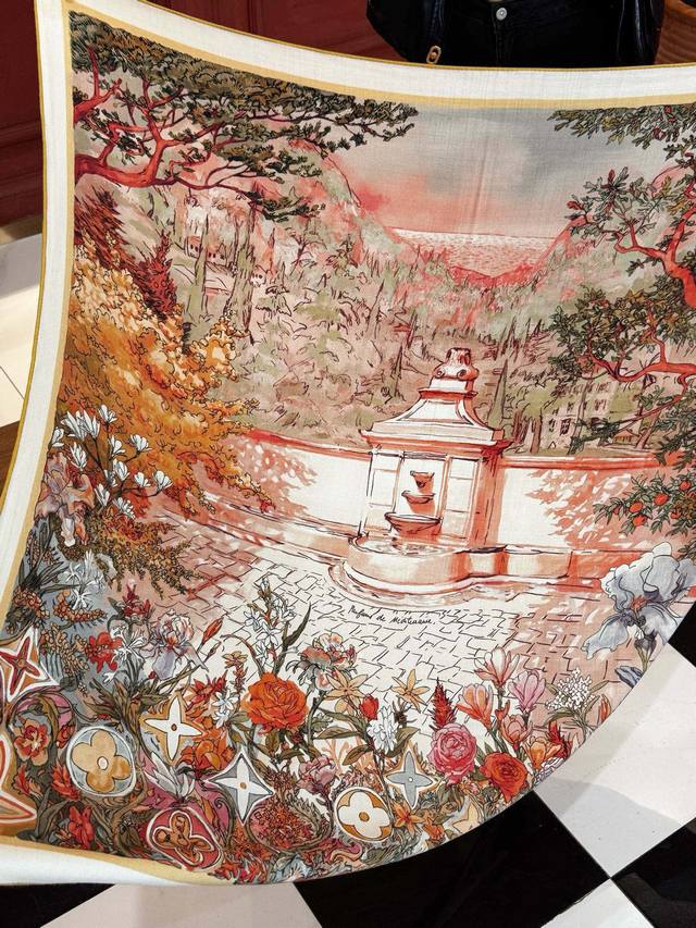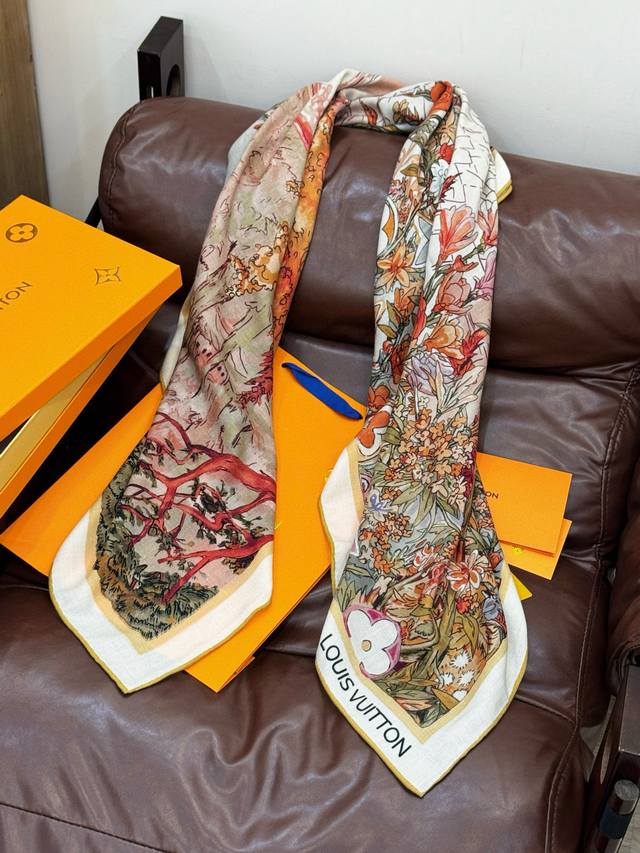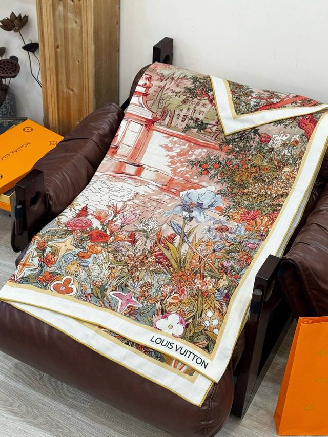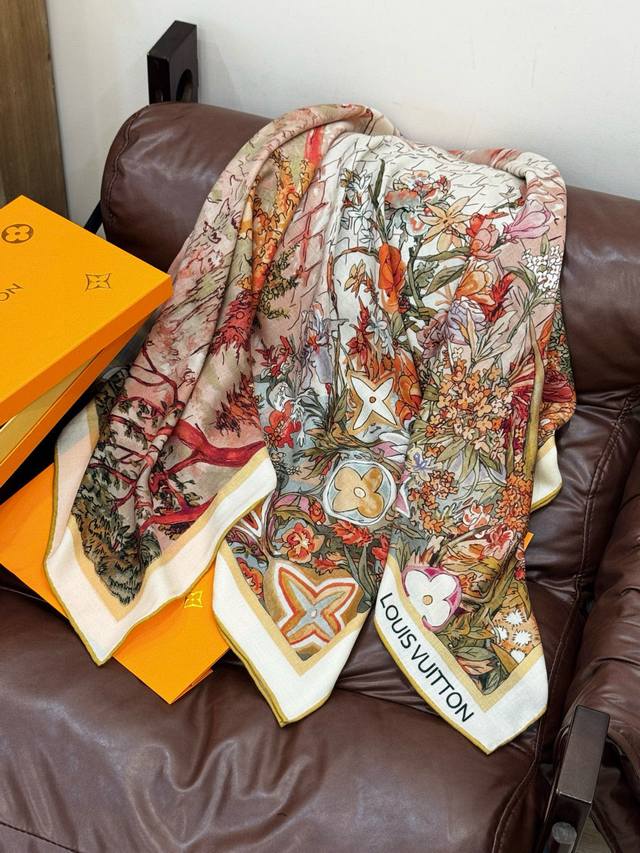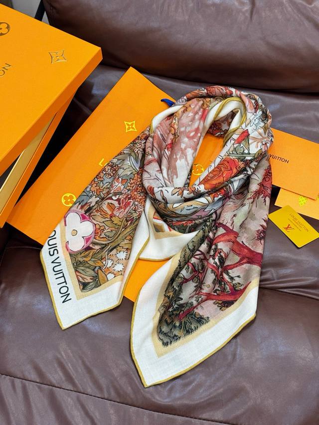 This classic piece showcases the essence of powerful and captivating feminine charm. This 140cm square scarf is innovatively interpreted, conveying boundless emotion and freedom, writing a unique narrative of individuality.